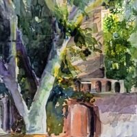 By painting loose and splashy, I let the watercolors do their own organic blending of color to create the watercolor magic – especially when painting “en plein air” (in the open air). Other times, my painting process is more controlled, or abstract using water soluble pastels or acrylics. It really depends on the subject matter and how I can best get to know it and share it. After painting a subject, I feel like we have a relationship. I can never pass by that same type of tree, fence or iguana without remembering and relating to it. One of my favorite things in life is finishing a painting, signing it and hanging it up!