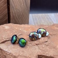 I studied art in California, at Orange Coast College, Laguna School of Art and Design, and Pasadena City College. After many careers in the world, I moved to Sedona in 1990. Feeling right at home at the Sedona Art Center allowed me to resume and expand my skills in the fields of stained glass and ceramics. In 1991, I bought my first glass-fusing kiln and began experimenting with the possibilities of making miniature stained glass windows. This led to fused glass jewelry — affordable, wearable glass art. My work first appeared in the SAC gallery around 1994. The process involves choosing colors, visualizing designs, cutting, grinding, heating the glass to 1700º, and slow cooling before incorporating the jewelry findings. This unique process combines ancient glass fusing techniques, space-age technology, and the magic of artistic creativity.