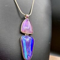 Over the years I have developed and refined many of my own techniques involving color combinations, glass combinations, hot-glass manipulation, custom findings, wire wrapping, wire embedding, grinding, and fire polishing which, I believe, give my jewelry creations their unique look and feel.