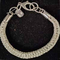 One of her trademarks is the handmade Roman or Etruscan chain, which was the first chain Charlie taught her to make. These chains date back to the 7th century BC.