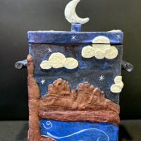 Suzy began her work at Sedona Arts Center in 2007. She has worked as an assistant to Dennis Ott in the Ceramics Department, helping to keep the studio running smoothly, and teaching workshops in hand building techniques. She enjoys the shared connections of working alongside other ceramic artists and participating in their collective art shows. She is inspired by their generosity of spirit and finds them all a joy to work with. Many times, especially during the sculpting process, she has felt divinely guided as if someone else’s hands were molding the clay. Suzy feels working in clay requires a Zen state of mind. She says you never know how a piece will ultimately turn out, if at all. It is a constant lesson in letting go and not being attached.