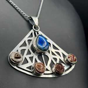 Large Lattice-Cut Pendant with Labradorite and Buttons KM006 by Kristine Mills
