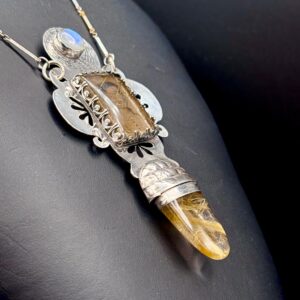 Moonstone, Reticulated Quartz, and Tintype Pendant Necklace KM007 by Kris Mills