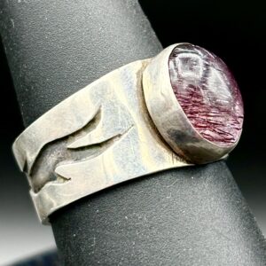 Red Reticulated Quartz Flames Overlay Ring KM009 by Kris Mills