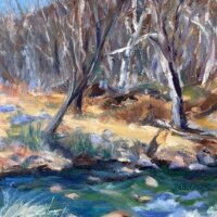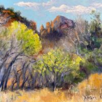 “This painting was started in plein air and finished in my studio. Very refreshing to paint among the Red Rocks.”