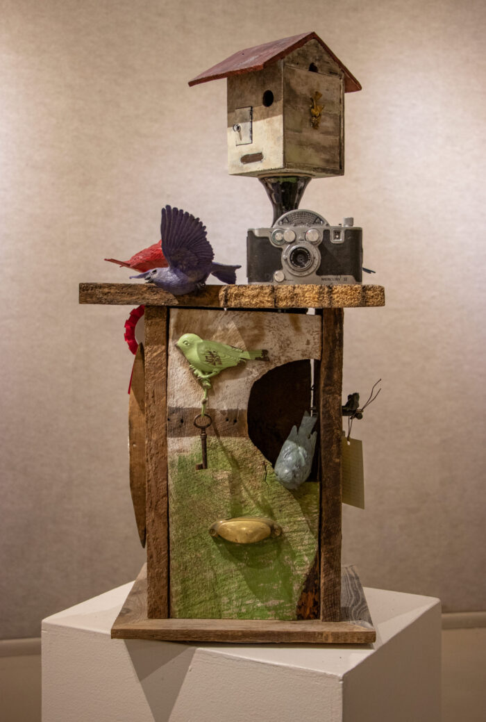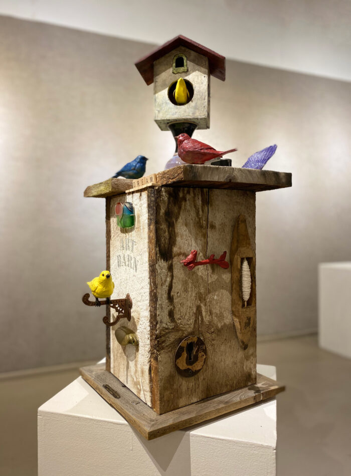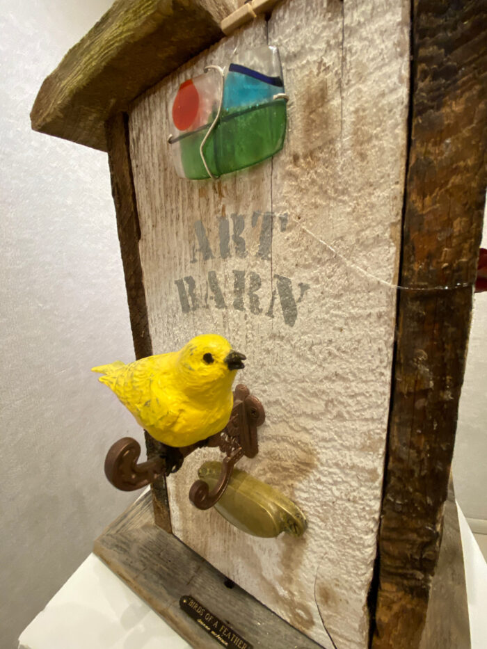 Bringing all the art elements the Sedona Arts Center offers, Deanne has created a beautiful sculpture from some of the original barn wood. In it, there are aspects of painting, fiber arts, photography, glass work, and ceramics.