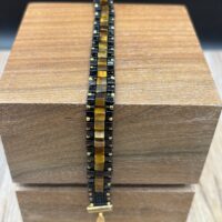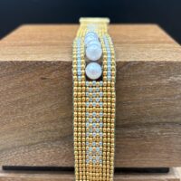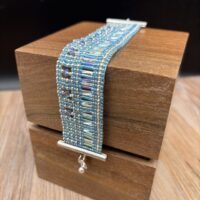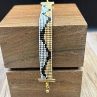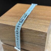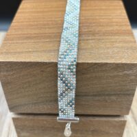 Nancy’s sister, Donna, gifted her a bead loom. She is inspired by the ancient history and relative culture of beading. She creates organically and intuitively, weaving with Miyuki Glass Seed Beads. Miyuki beads are an essential part of Japanese textile and jewelry-making traditions, with a long history of craftsmanship and precision. Her beadwork may include the use of crystals, a variety of Jaspers, Turquoise, Carnelian, Onyx, Tiger’s Eye, Quartz, Opalite, Lapis Lazuli and Labradorite and Mother of Pearl and Crystals. Nancy grew up in the Midwest. A 15-year culinary career included intricate plate design (Nouvelle Cuisine), corporate catering, intimate dinner parties to large scale catered events of up to several hundred guests Her 20-year healthcare career provided her the opportunity to reside in Las Vegas and Blue Diamond in Nevada, Taos, New Mexico and now, Prescott, Arizona. There is no other place she would rather be than the Southwest. She met her husband, Phillip in Blue Diamond, Nevada, and their first date was a moonlight hike. A registered yoga teacher, she has taught for the city of Las Vegas, and from her home studio in Blue Diamond. She currently subs at a climbing gym and teaches classes for neighbors with the proceeds going to a women’s homeless shelter.
