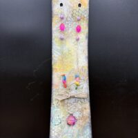 I create mixed media work using vintage paper, found objects, and discarded materials. My process is rooted in reclaiming what’s been forgotten and giving it new life. Through collage, assemblage, and handmade journals, I explore themes of memory, time, and resilience. I’m interested in how worn materials can still carry meaning, and how imperfection can be a form of beauty. Each piece reflects a balance between careful construction and intuitive decision-making. A lifelong collector of overlooked things, Sharon taught herself to make art the same way she lives: by feeling her way through it. As an emerging artist, she’s drawn to themes of transformation, memory, and the quiet chaos of becoming. Her work is shaped by personal history, Midwestern garage sale Saturdays, and a deep appreciation for things that still carry weight, even after they’ve been cast aside.