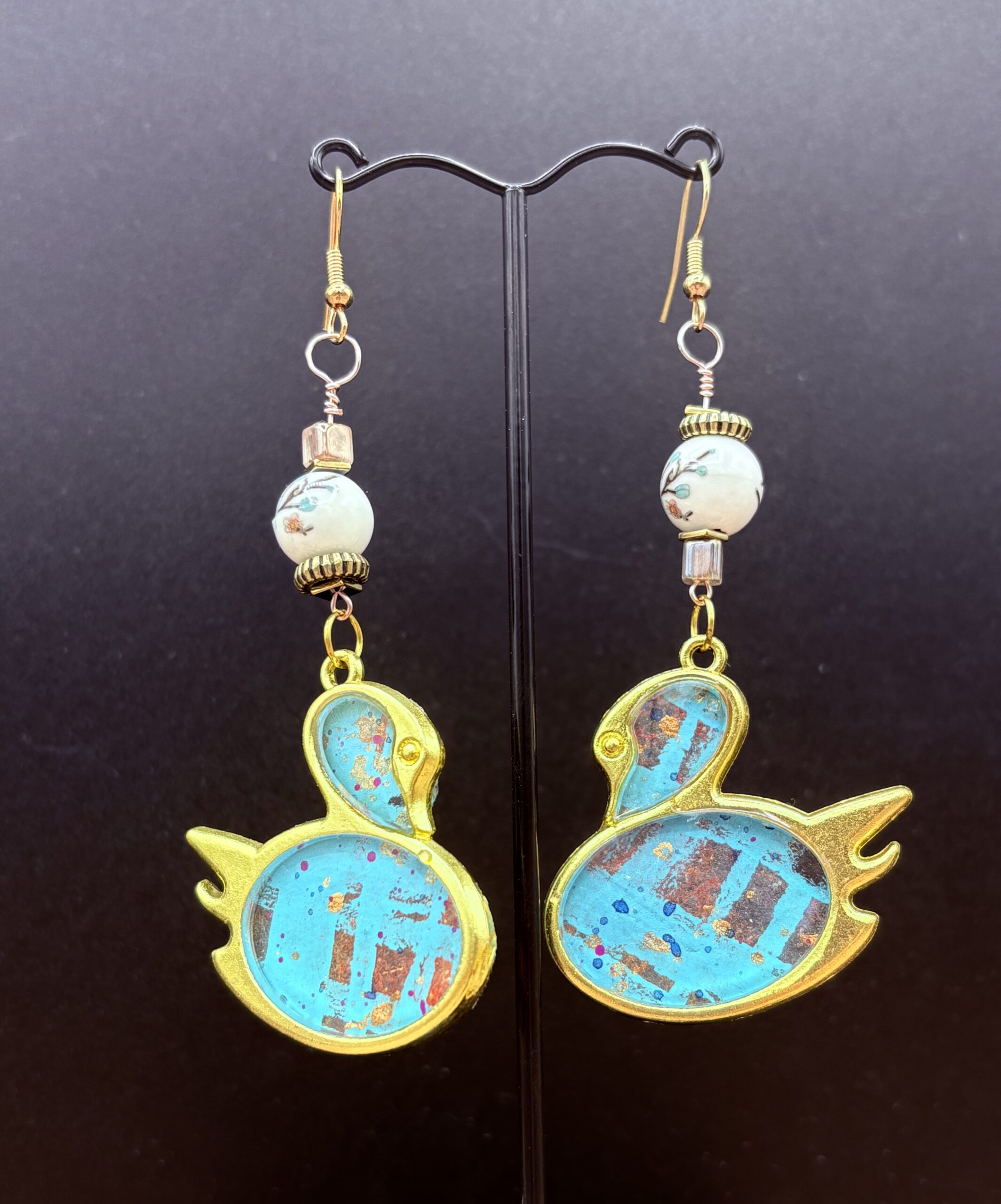 Blueberry Song Earrings made with Swan Bezel, and Acrylic Beads by Sharon Gilham with unique Artist item number scs136e