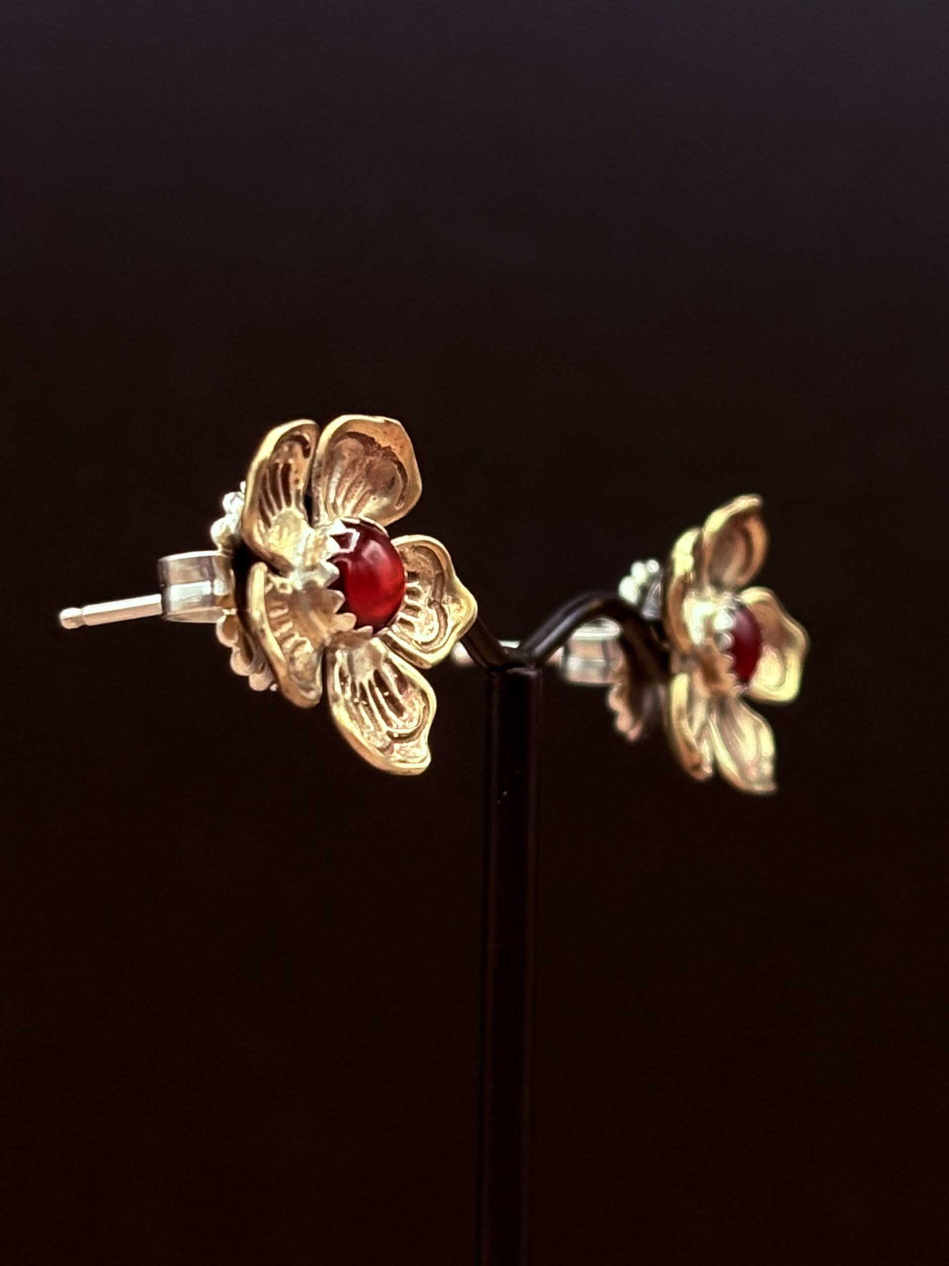 Bronze 5-Petal Flower Post Earrings with Paua Shell by Tom Yazzie TYE-915