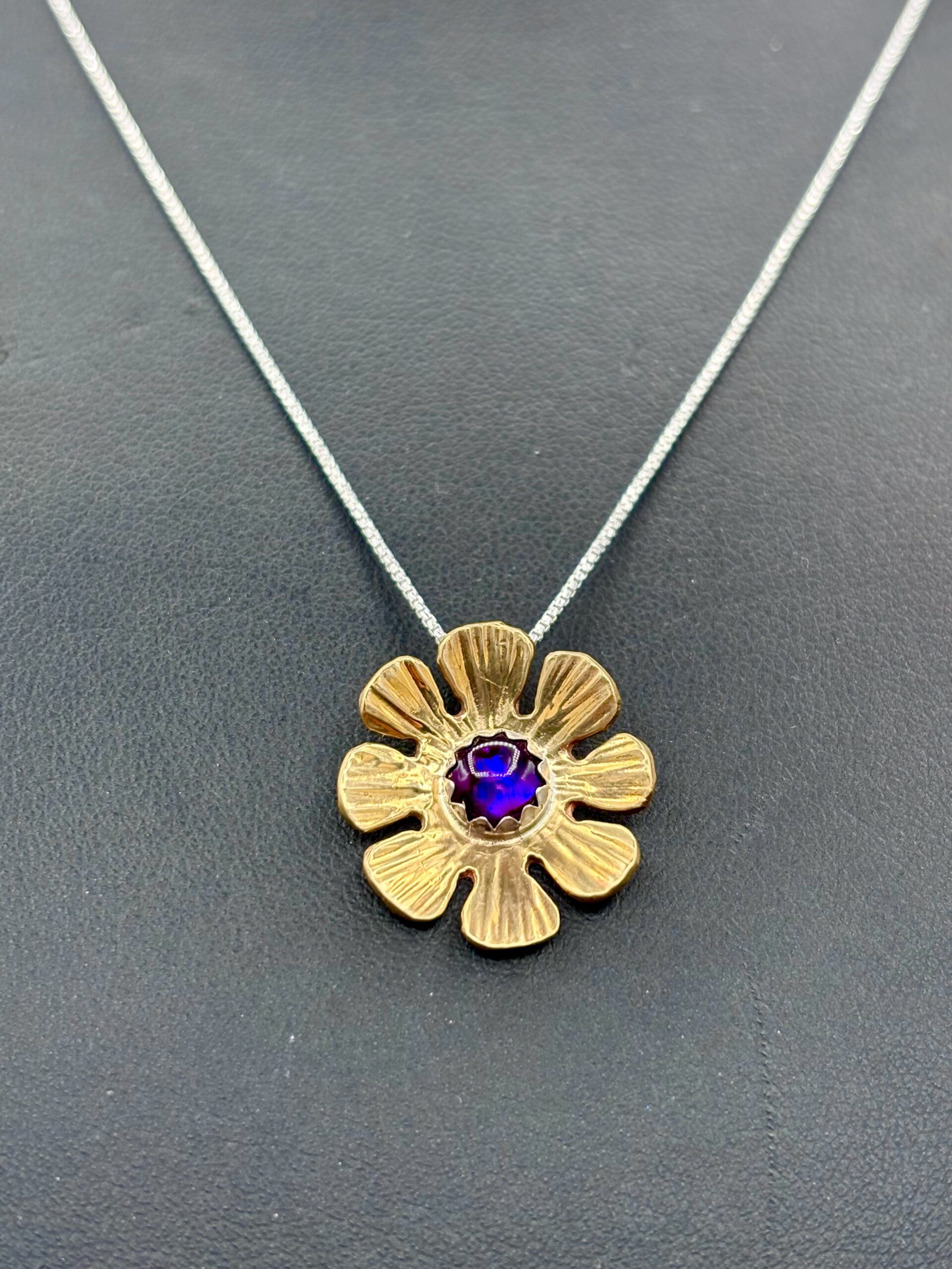 Bronze Flower Pendant with Paua Shell by Tom Yazzie TYP771