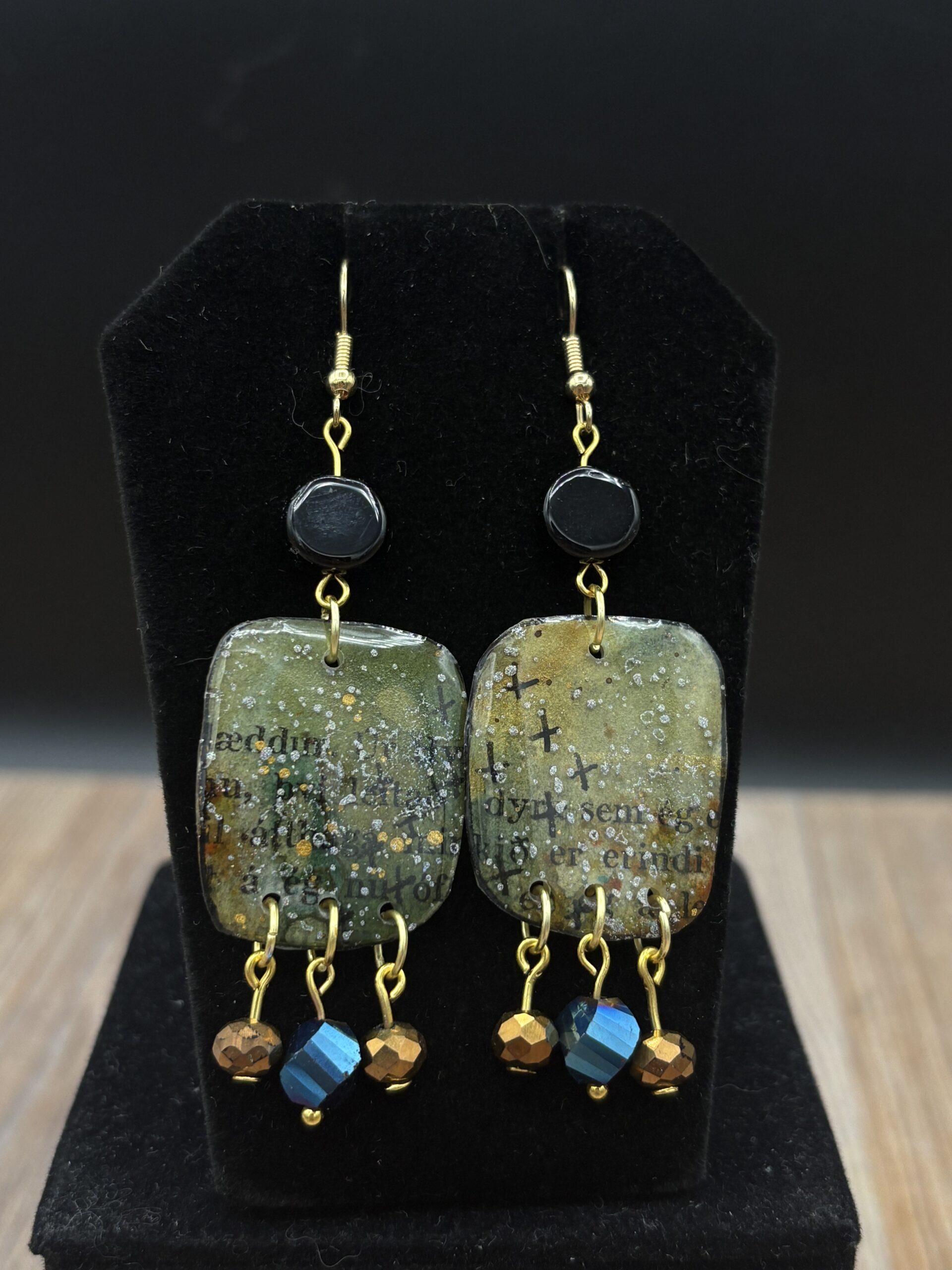 Circular Black Bead and Book Page Earrings by Sharon Gilham SCS300E