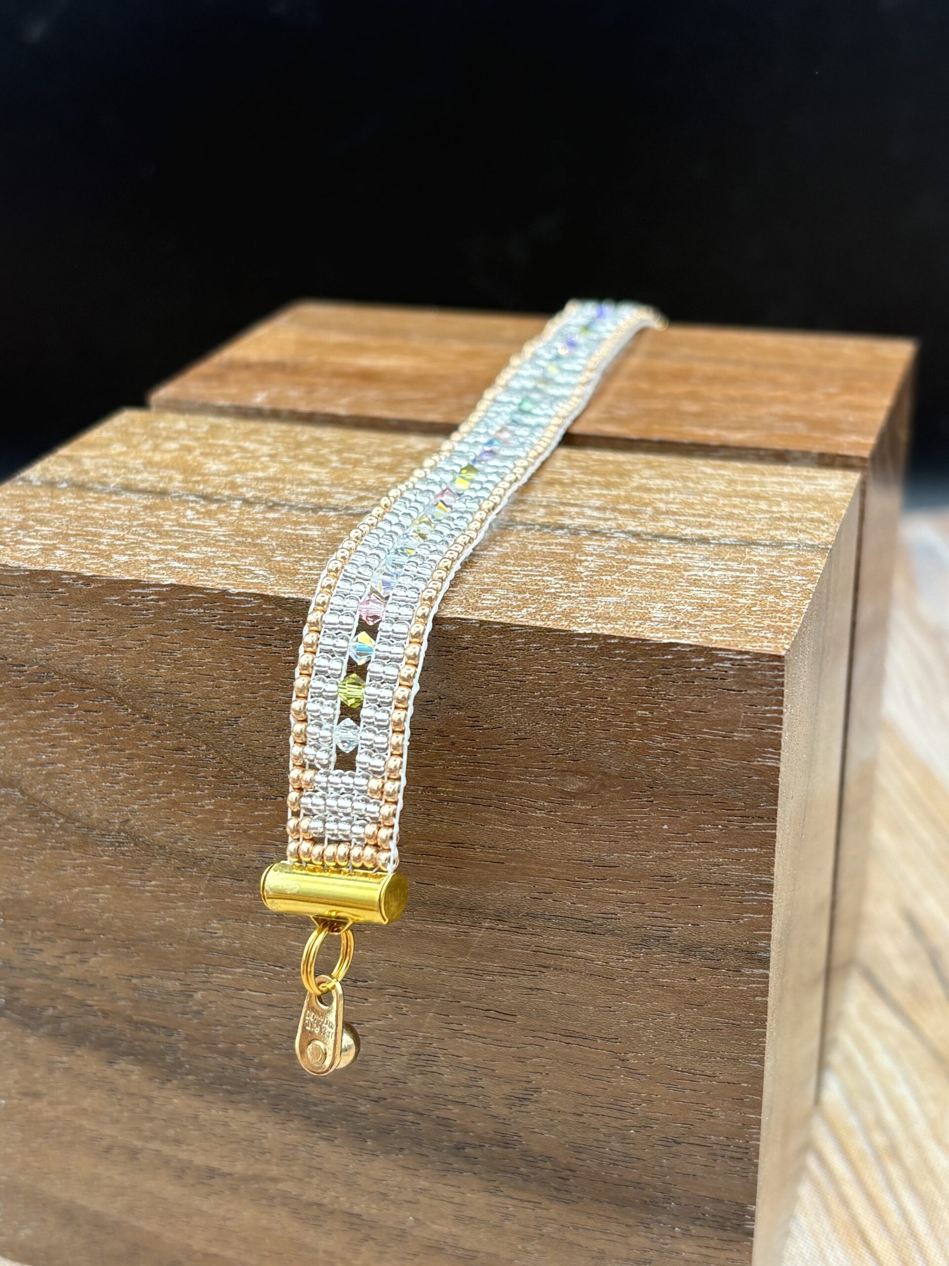 Nancy’s sister, Donna, gifted her a bead loom. She is inspired by the ancient history and relative culture of beading. She creates organically and intuitively, weaving with Miyuki Glass Seed Beads. Miyuki beads are an essential part of Japanese textile and jewelry-making traditions, with a long history of craftsmanship and precision. Her beadwork may include the use of crystals, a variety of Jaspers, Turquoise, Carnelian, Onyx, Tiger’s Eye, Quartz, Opalite, Lapis Lazuli and Labradorite and Mother of Pearl and Crystals. Nancy grew up in the Midwest. A 15-year culinary career included intricate plate design (Nouvelle Cuisine), corporate catering, intimate dinner parties to large scale catered events of up to several hundred guests Her 20-year healthcare career provided her the opportunity to reside in Las Vegas and Blue Diamond in Nevada, Taos, New Mexico and now, Prescott, Arizona. There is no other place she would rather be than the Southwest. She met her husband, Phillip in Blue Diamond, Nevada, and their first date was a moonlight hike. A registered yoga teacher, she has taught for the city of Las Vegas, and from her home studio in Blue Diamond. She currently subs at a climbing gym and teaches classes for neighbors with the proceeds going to a women’s homeless shelter.