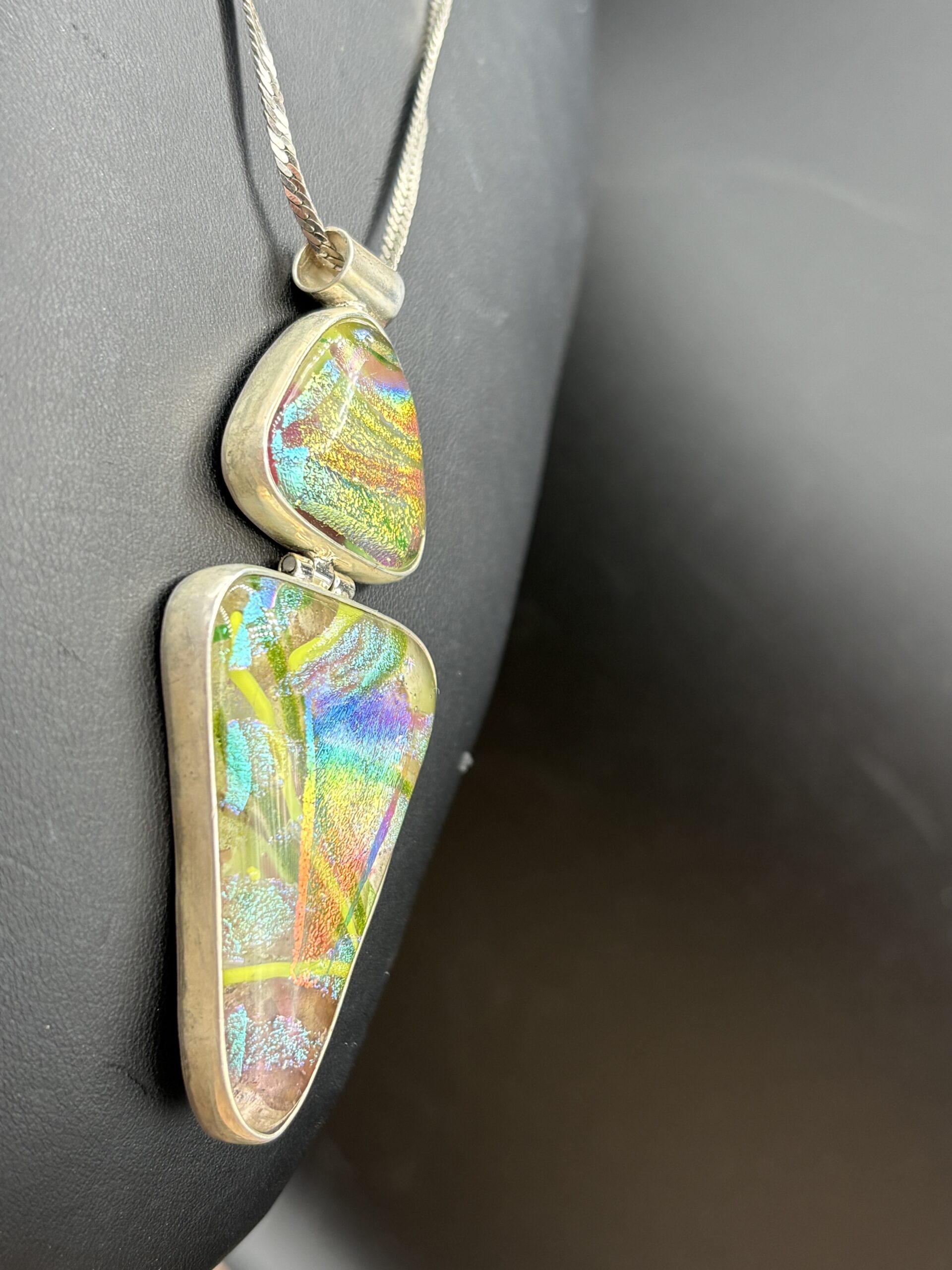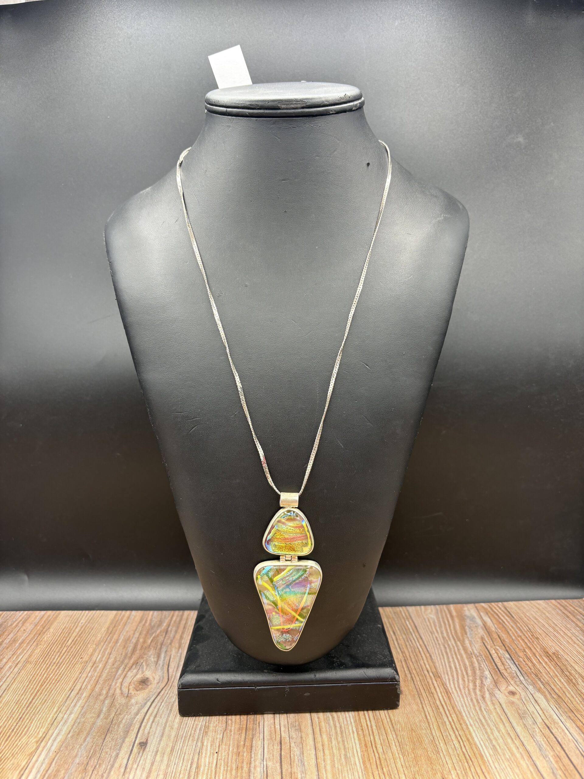 / Double Silver Bezel Pendant w/chain by Karen Puckett