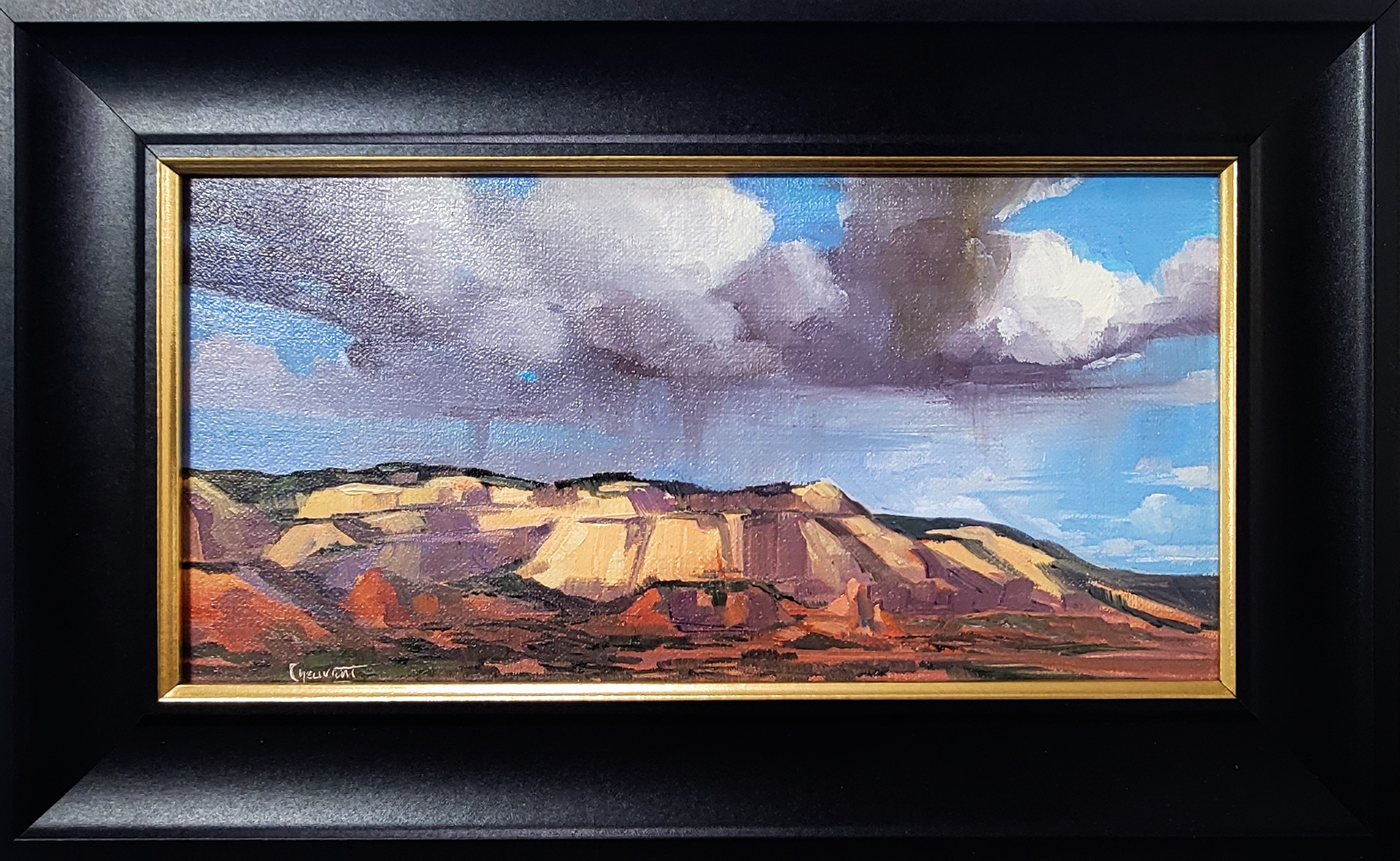 My favorite shoes are hiking boots. For years I've explored the wildernesses of the Southwest, hiking, backpacking, hang gliding and mountain biking - interacting with our wild places up close and in person. This has profoundly influenced my work. I believe we are incomplete without a connection to, and appreciation of, the natural world, and that we should cherish and protect it. To honor that end, I create impressionist/realism oil paintings for those who love the Southwest landscape and wildlife, so that my collectors can share in that spiritual relationship. I want to promote deeper respect and connection with our vanishing wild places and the creatures that call them home. Casey Cheuvront studied drawing, painting, sculpture and ceramics at CSUF California, and has been influenced (and instructed) by current artists like Douglas Fryer, Bill Cramer, Dave Santillanes, Alan Wolton, Matt Smith, Stanley Kurth, Casey Klahn, and Camille Przewodek. Her work is informed not only by formal study but also by her ongoing plein air habit and life-long appreciation of the natural world, established through a "feet-on-the trail" connection over many years. Her outdoor education began when she was very young, accompanying her father on long treks, fishing, hiking, bow-hunting, archery exhibitions and professional competitive archery shoots. Later, she backpacked her way across the Sierras and the Uintas, flew California peaks in her hang glider, skied Utah powder, and mountain biked many happy trails in the Arizona desert. Cheuvront’s pieces reveal an ongoing fascination with the Western and Southwestern wilderness, whether reflected in a local trail or a remote lake only reachable by a long backpack. Her enthusiasm is translated into a vibrant, modern palette and energetic, dynamic brushwork. Look for studio and plein air works showcasing the Yosemite highlands, Sonoran desert, and the red rocks of Sedona.