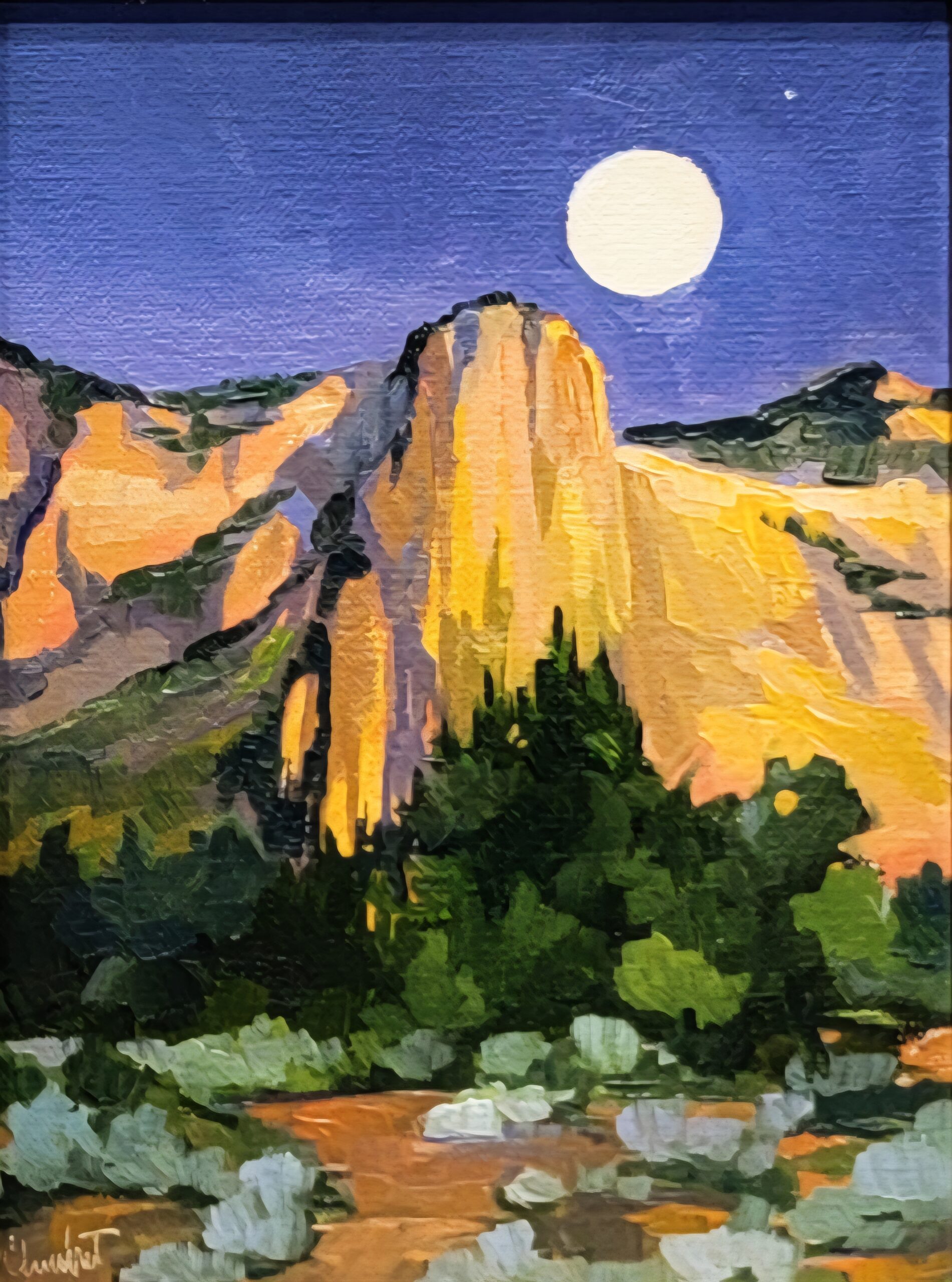 My favorite shoes are hiking boots. For years I've explored the wildernesses of the Southwest, hiking, backpacking, hang gliding and mountain biking - interacting with our wild places up close and in person. This has profoundly influenced my work. I believe we are incomplete without a connection to, and appreciation of, the natural world, and that we should cherish and protect it. To honor that end, I create impressionist/realism oil paintings for those who love the Southwest landscape and wildlife, so that my collectors can share in that spiritual relationship. I want to promote deeper respect and connection with our vanishing wild places and the creatures that call them home. Casey Cheuvront studied drawing, painting, sculpture and ceramics at CSUF California, and has been influenced (and instructed) by current artists like Douglas Fryer, Bill Cramer, Dave Santillanes, Alan Wolton, Matt Smith, Stanley Kurth, Casey Klahn, and Camille Przewodek. Her work is informed not only by formal study but also by her ongoing plein air habit and life-long appreciation of the natural world, established through a "feet-on-the trail" connection over many years. Her outdoor education began when she was very young, accompanying her father on long treks, fishing, hiking, bow-hunting, archery exhibitions and professional competitive archery shoots. Later, she backpacked her way across the Sierras and the Uintas, flew California peaks in her hang glider, skied Utah powder, and mountain biked many happy trails in the Arizona desert. Cheuvront’s pieces reveal an ongoing fascination with the Western and Southwestern wilderness, whether reflected in a local trail or a remote lake only reachable by a long backpack. Her enthusiasm is translated into a vibrant, modern palette and energetic, dynamic brushwork. Look for studio and plein air works showcasing the Yosemite highlands, Sonoran desert, and the red rocks of Sedona.