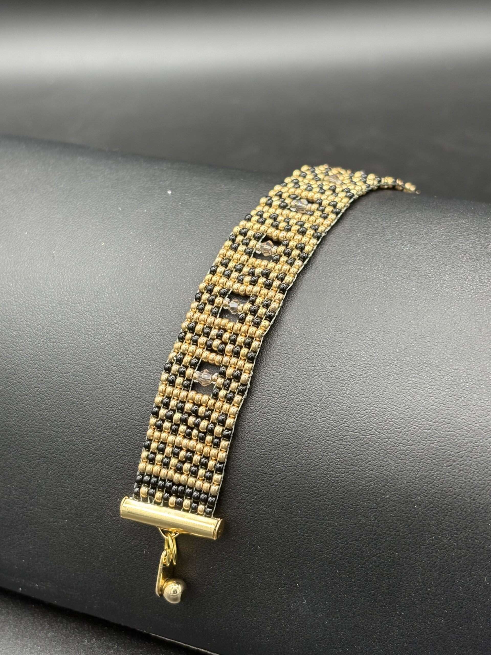Gold and Black Miyuki Seed Beads in Champagne Crystal Window Pattern by Nancy Leicht NanC38