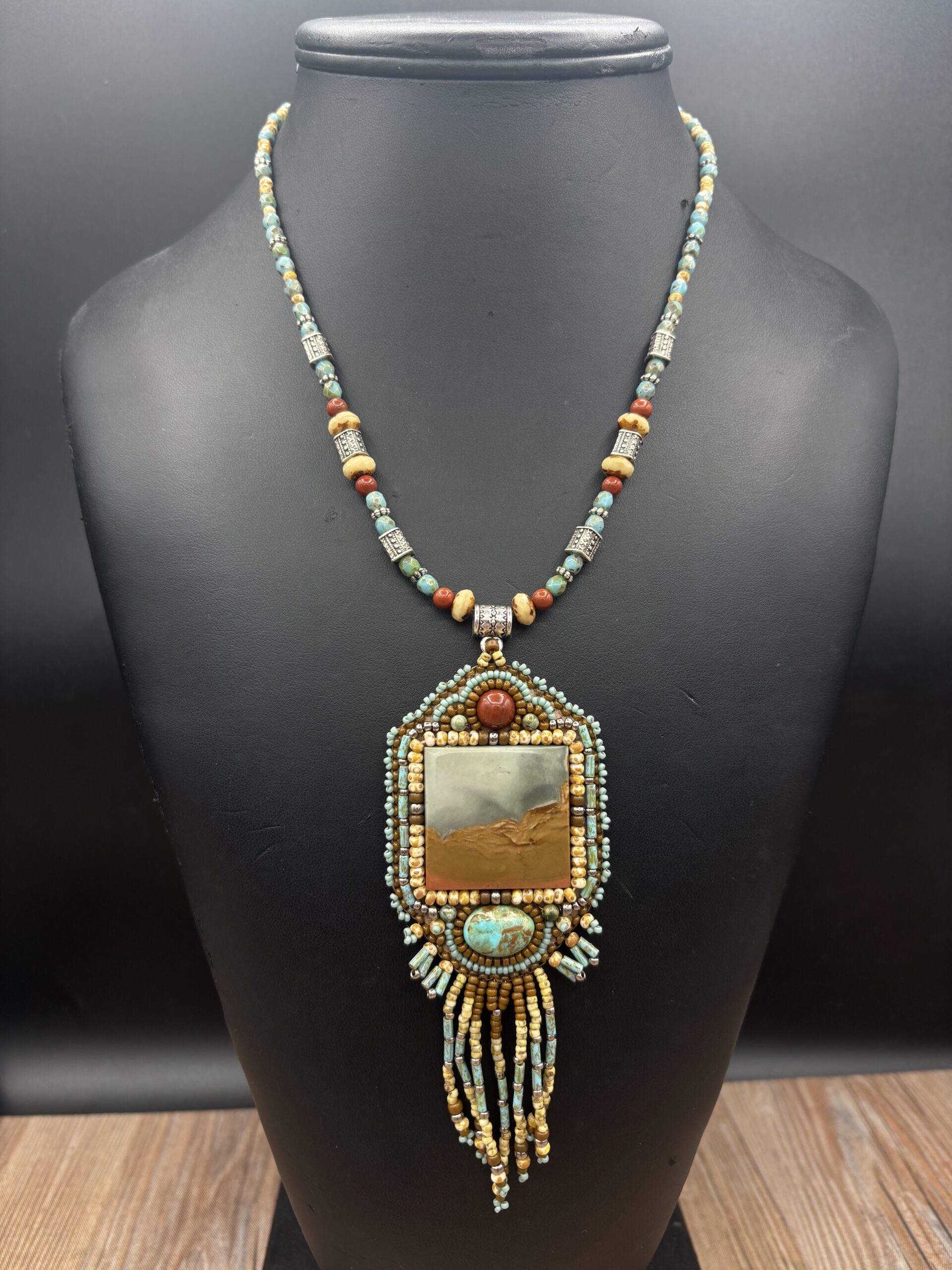 Jasper and Turquoise Beaded Necklace by Sue Horine SHN42