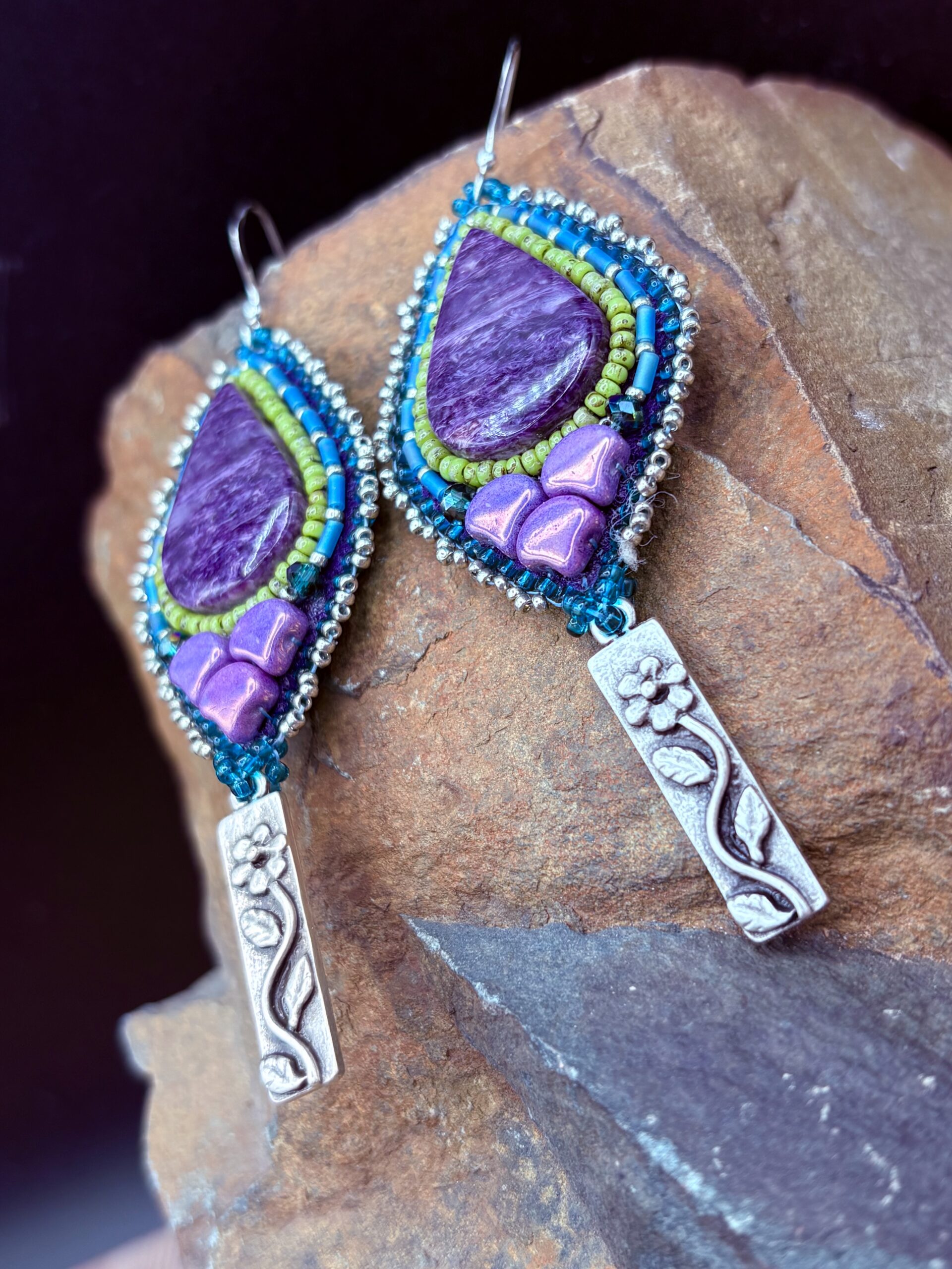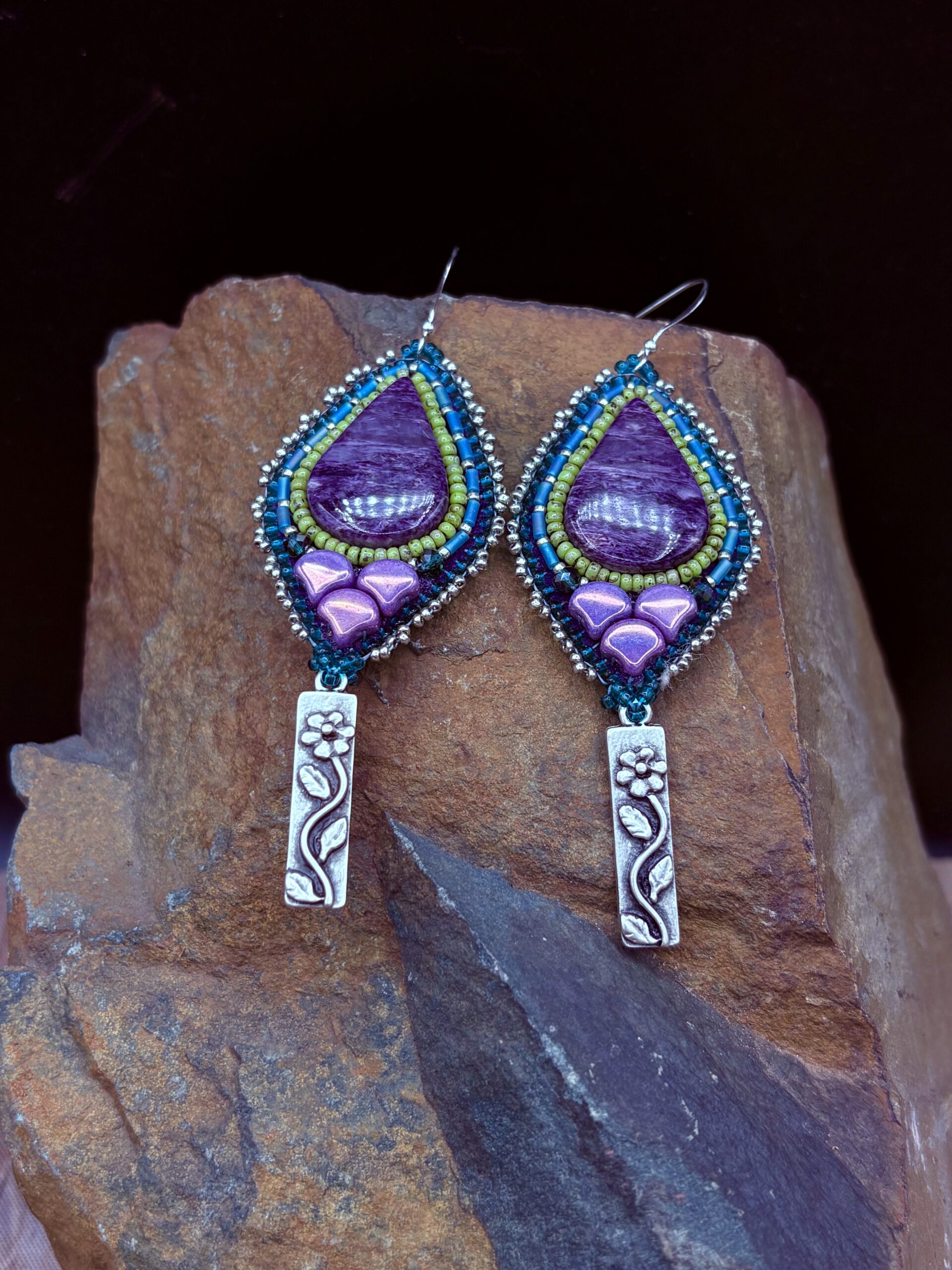Jugilite w/ Flower Oliver Dangles, Earrings E55 by Sue Horine