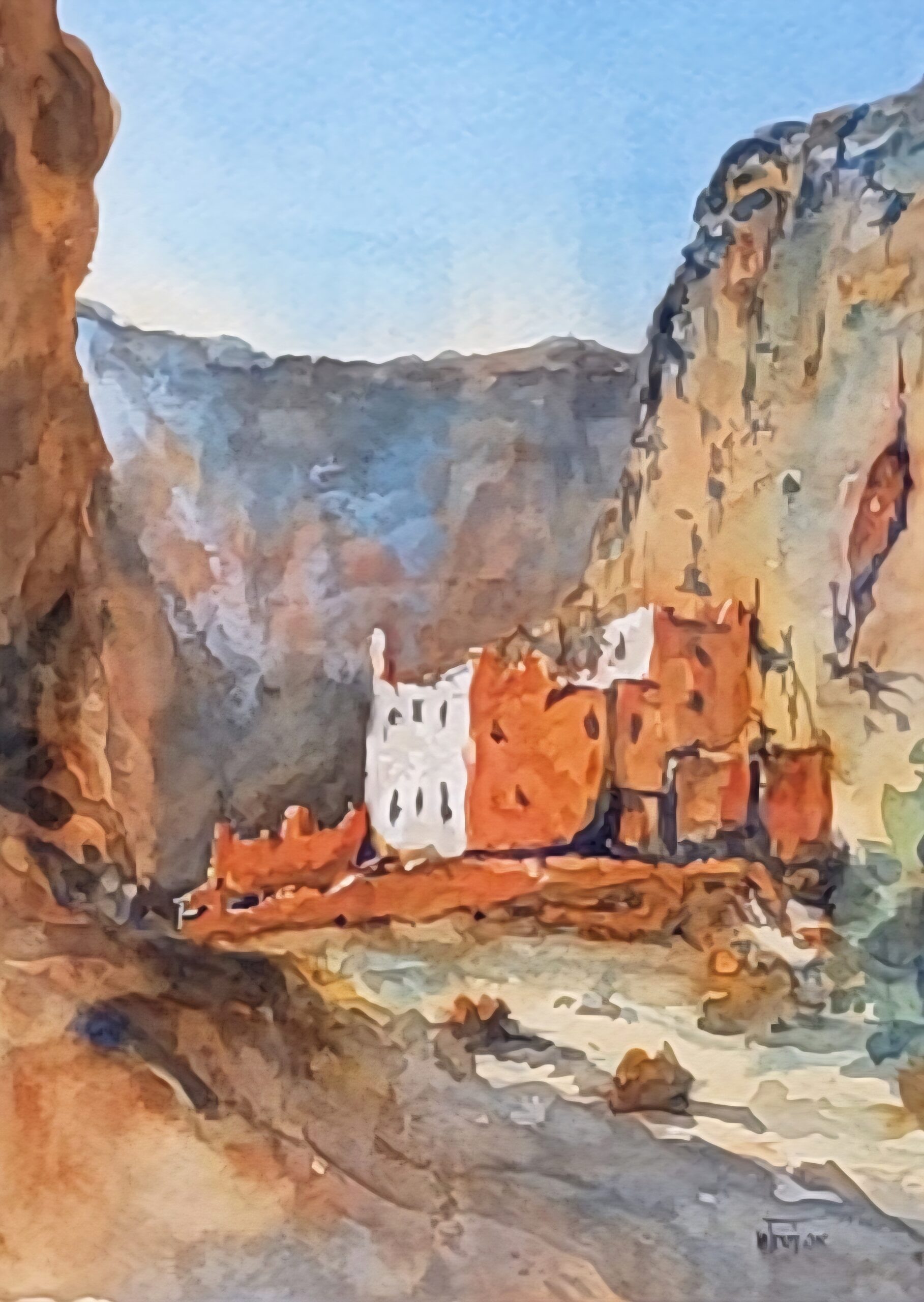 Ever since I can remember, drawing and painting has held a place in my soul. Being honest with myself and the reality of pursuing fine art as a career, (I had no desire to be a starving artist) I enrolled at the “Burnley School of Professional Art. After graduating it was suggested I relocate to an area of the country with a larger advertising presence. Seattle was still a relatively small city. I did not want to move away from friends and family so I resigned myself to the fact that art would be one of my hobbies. When life, marriage, children, full time job, etc. became of paramount importance, (this is a repeating theme amongst many artists) I put away the paints and tended to the task at hand. Forty years later retired, and with lots of time to spare, it was my time to get back in to something I had always loved doing and that was painting. I have painted in all different mediums but watercolor was what I had finished with 40 years earlier so that is what I decided to jump back in with. Choosing Sedona as a place to retire was a perfect fit for me. Artists abound and classes are abundant. I do not believe you ever stop learning. And lest I forget, the magic of the landscape and light found in the Southwest is inspiration for us all. My Plein Air experience is limited to a local group of artists that venture out Tuesday Mornings, to various locations around the Sedona area. I have brought my paints and paper on a few trips when visiting family in Maine and Pennsylvania.