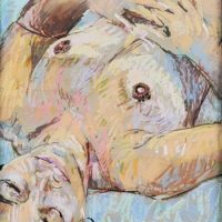 Joh>John Henry Waddell, born in Des Moines, Iowa in 1921, began teaching art to adults when he was 16. After Army service, he achieved his MFA and MAE from the School of the Art Institute of Chicago. Waddell headed art education at the New Bauhaus in Chicago, then at Arizona State University, before retiring from university teaching at age 40 to allow full time for his mostly figurative art. March 25, 1949 Waddell married artist Ruth Holland who became the artist’s muse, inspiring him both in life and art. Through the decades Ruth appeared in many of his paintings and sculptures. John also became a primary muse in Ruth’s work.