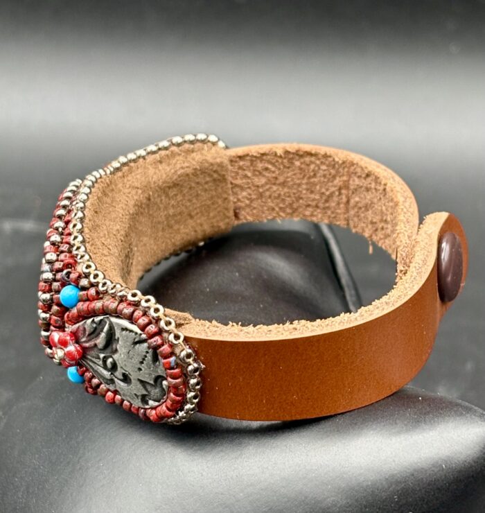 Mohave Turquoise Leather Cuff C25 by Sue Horine