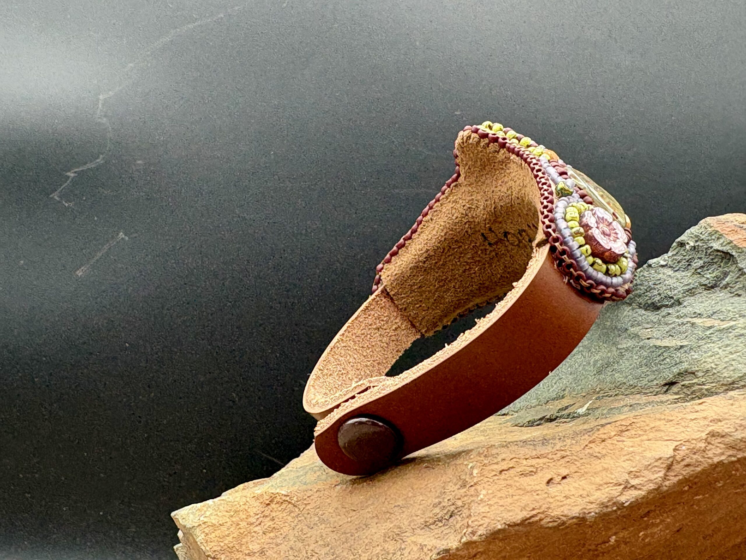 Sue Horine has been creating bead embroidered art jewelry since 2005. She was born in California and much of her inspiration comes from her childhood family vacations to the Southwest and Sierra Nevada Mountains. Primarily self-taught, her beaded jewelry has become easily recognizable as her style has developed from her love of nature and the scenic stone cabochons she incorporates in her work.
