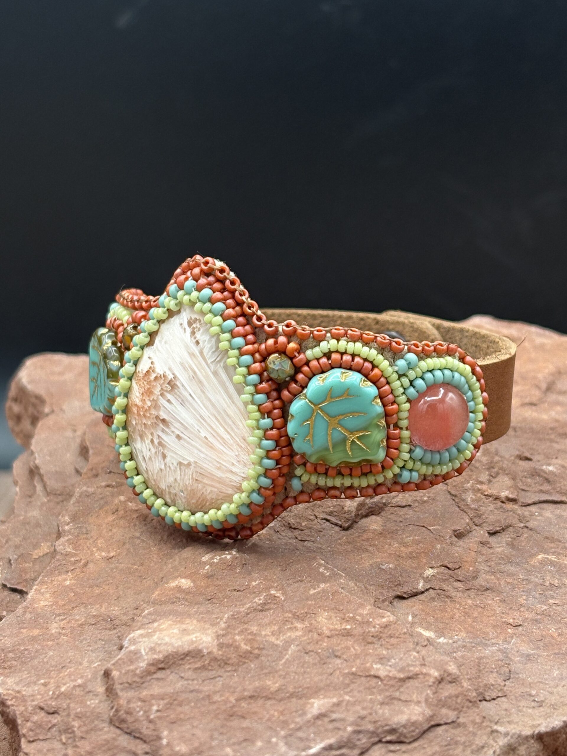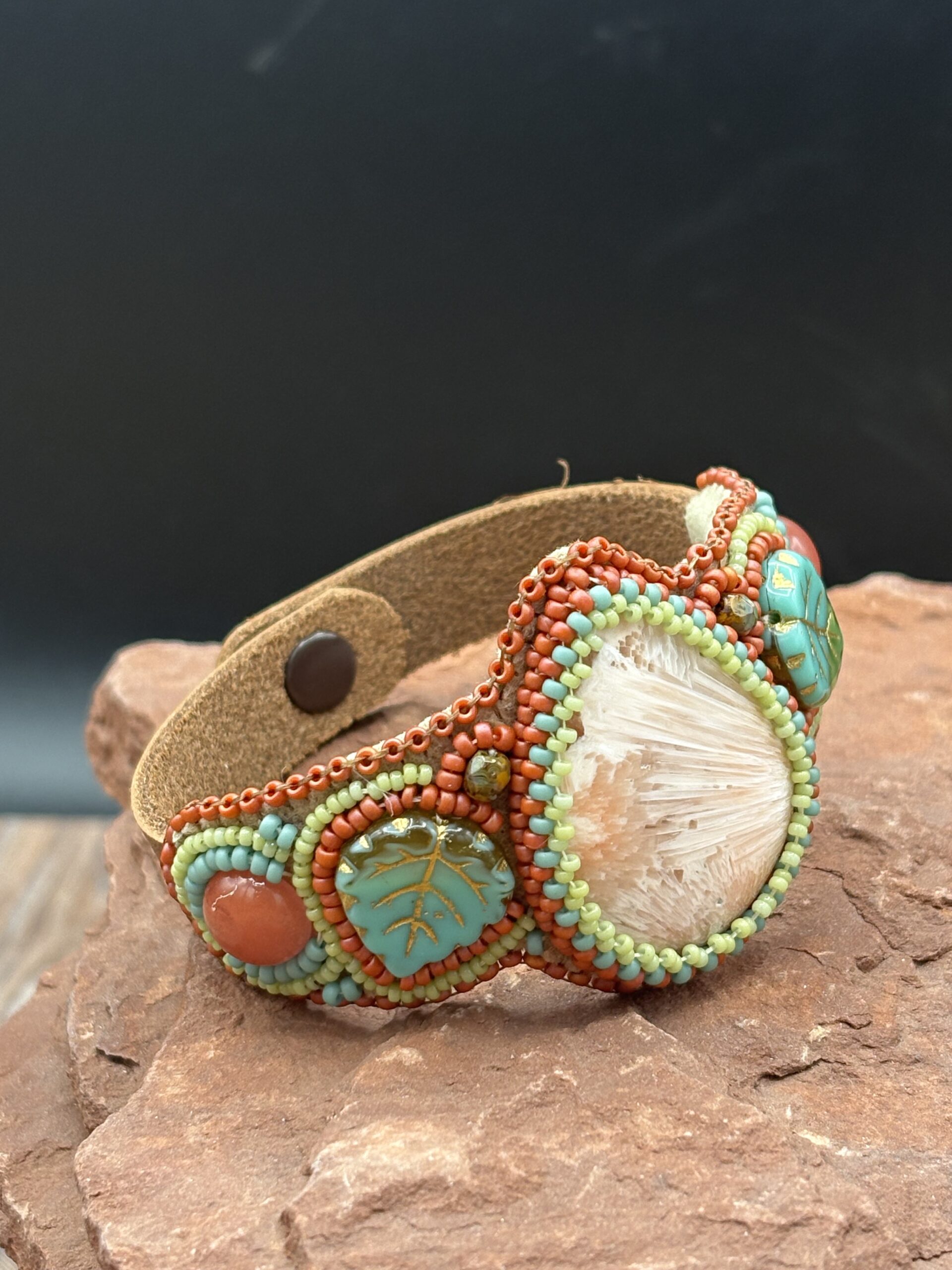 Orange Scolecite with Rose Quartz on 1/2″ Leather Cuff