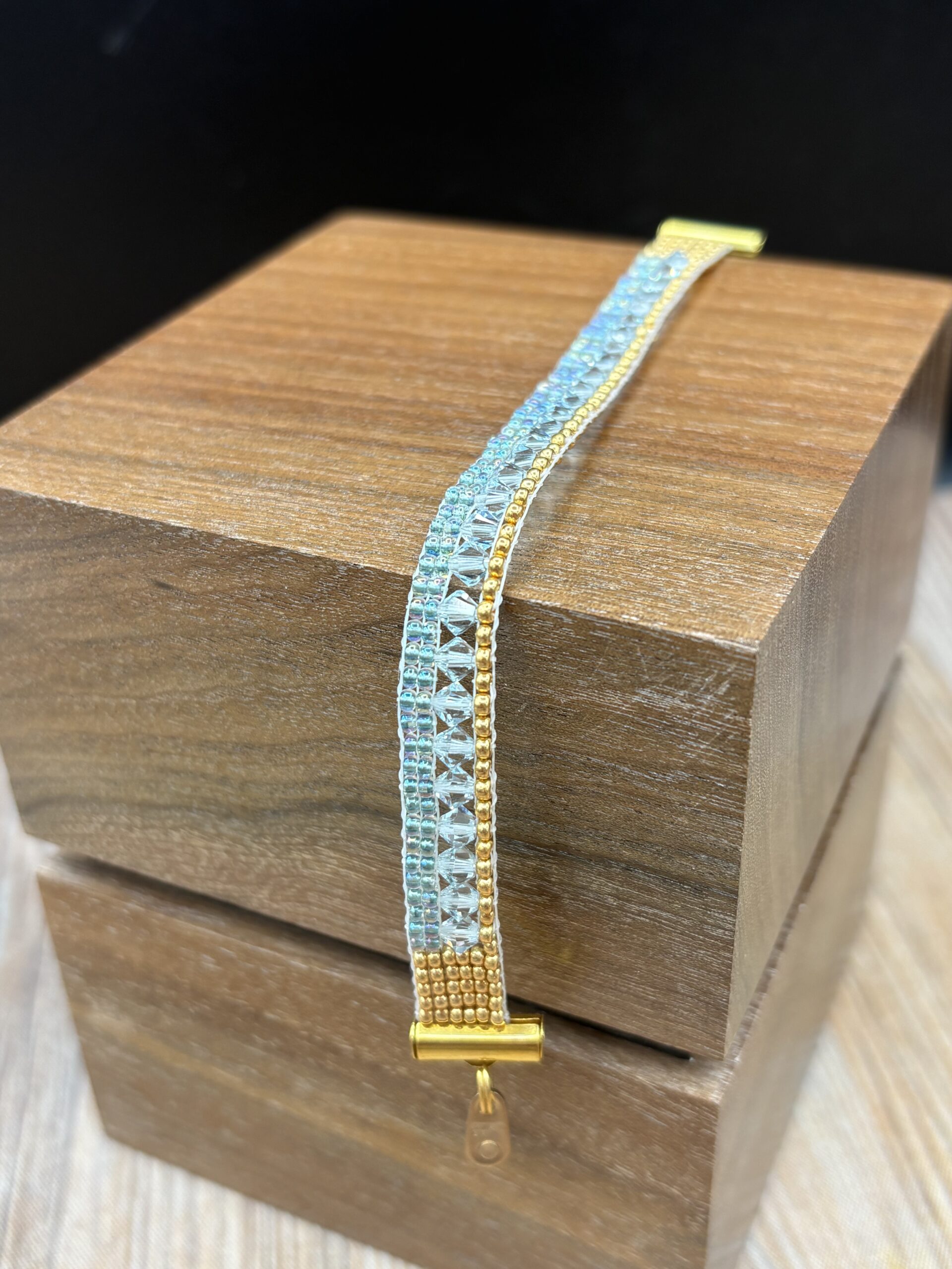 Nancy’s sister, Donna, gifted her a bead loom. She is inspired by the ancient history and relative culture of beading. She creates organically and intuitively, weaving with Miyuki Glass Seed Beads. Miyuki beads are an essential part of Japanese textile and jewelry-making traditions, with a long history of craftsmanship and precision. Her beadwork may include the use of crystals, a variety of Jaspers, Turquoise, Carnelian, Onyx, Tiger’s Eye, Quartz, Opalite, Lapis Lazuli and Labradorite and Mother of Pearl and Crystals. Nancy grew up in the Midwest. A 15-year culinary career included intricate plate design (Nouvelle Cuisine), corporate catering, intimate dinner parties to large scale catered events of up to several hundred guests Her 20-year healthcare career provided her the opportunity to reside in Las Vegas and Blue Diamond in Nevada, Taos, New Mexico and now, Prescott, Arizona. There is no other place she would rather be than the Southwest. She met her husband, Phillip in Blue Diamond, Nevada, and their first date was a moonlight hike. A registered yoga teacher, she has taught for the city of Las Vegas, and from her home studio in Blue Diamond. She currently subs at a climbing gym and teaches classes for neighbors with the proceeds going to a women’s homeless shelter.