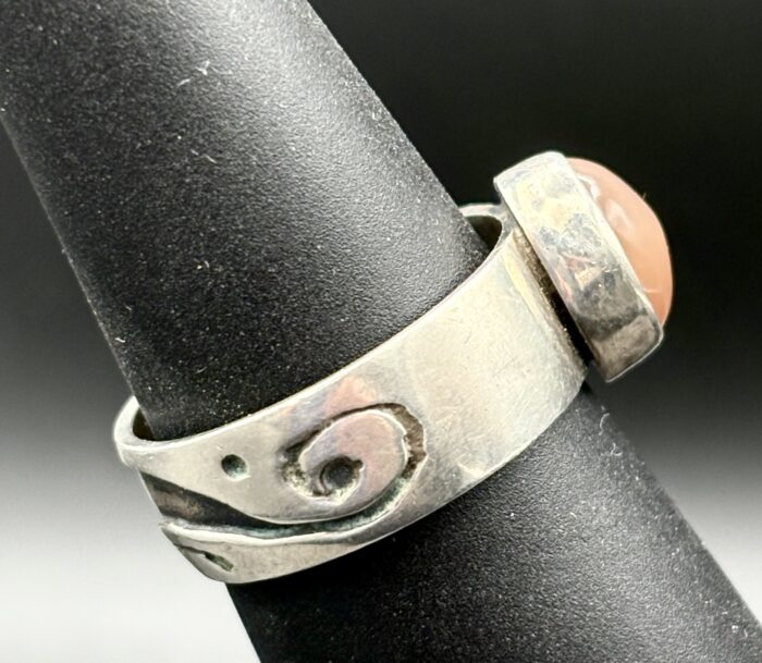 Peach Moonstone Swirly Overlay Ring KM008 by Kris Mills