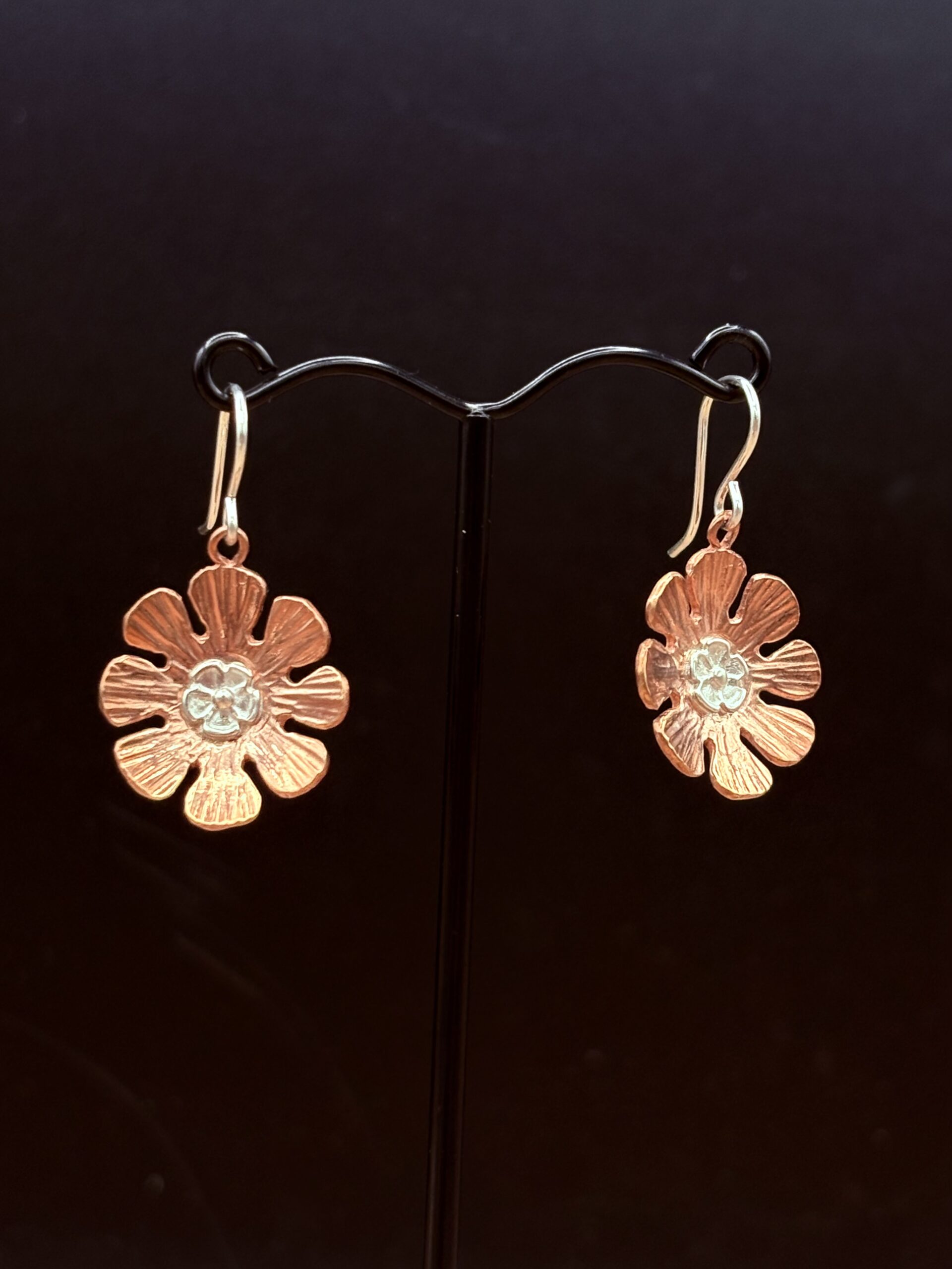 Red Bronze Flower Earrings with Sterling Silver Flower Accent by Tom Yazzie TYE-860