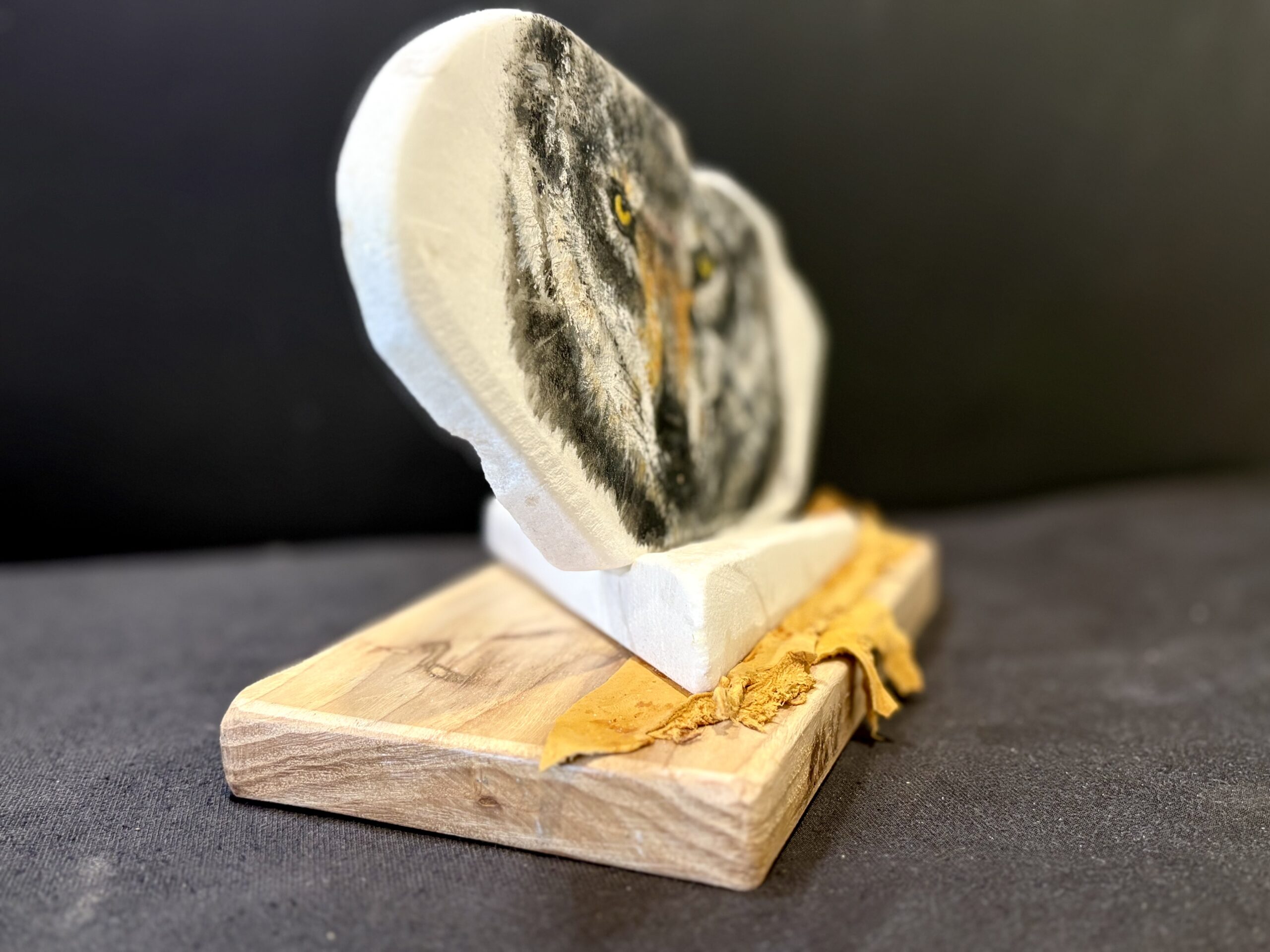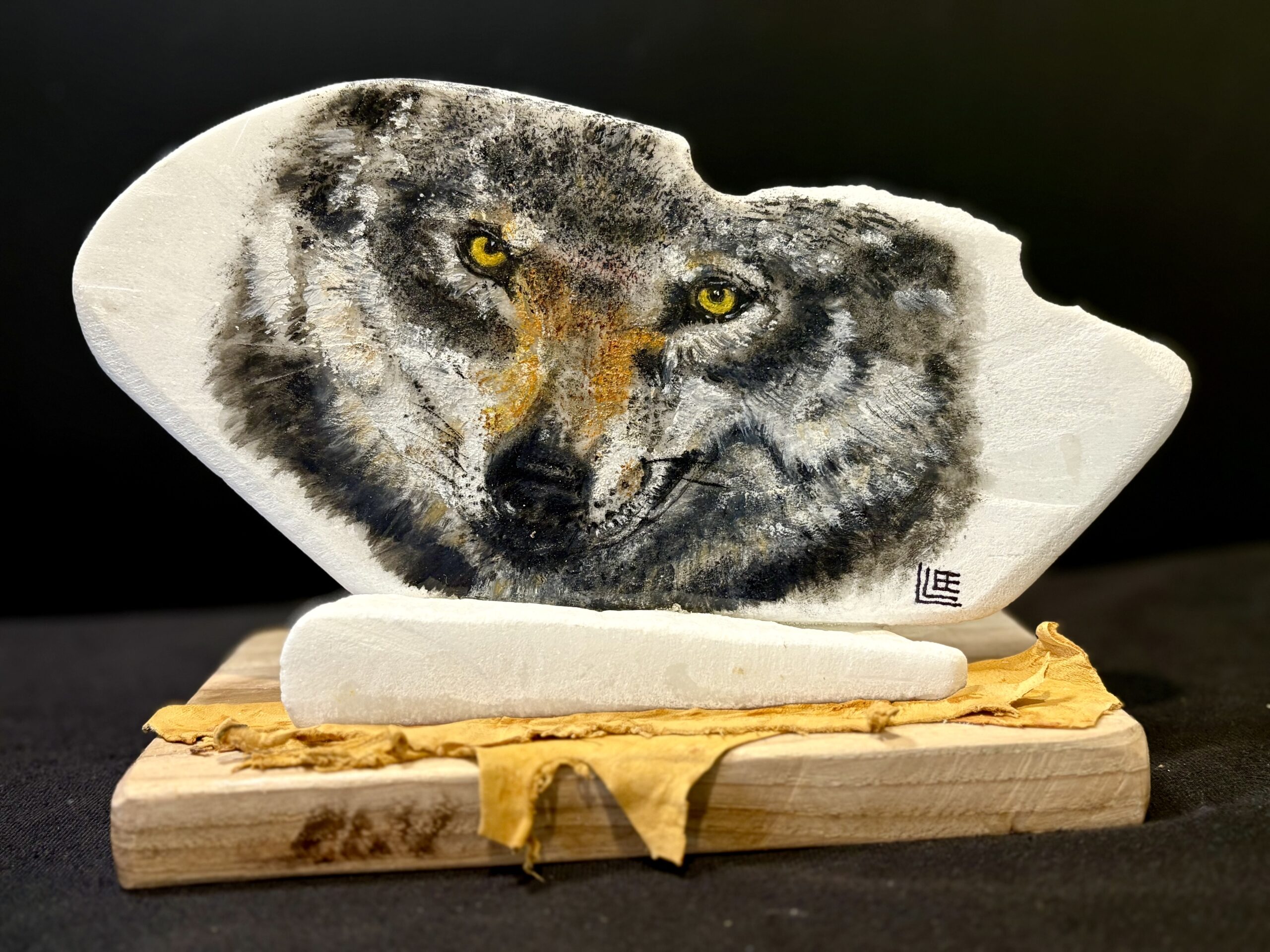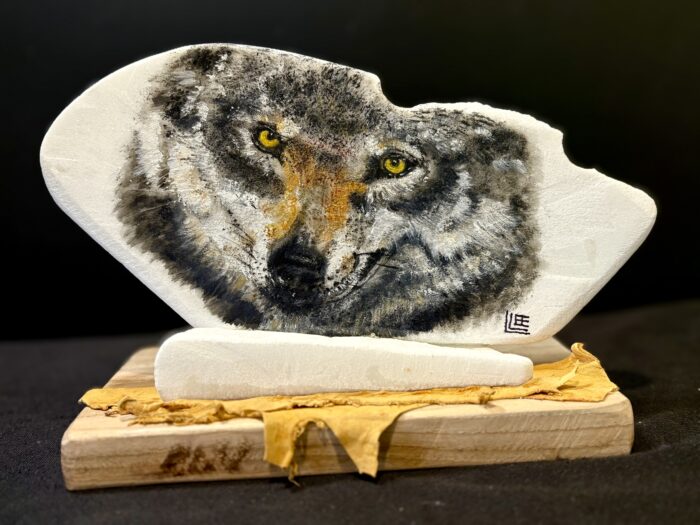 Leanne was born and raised in the Midwest, in a south suburb of Chicago. She and her husband, then moved to Gunnison, Colorado and raised three boys. They lived here for 40 years. Leanne had a love of different art forms since her mid-twenties and dabbled in everything from painting and routing signs to Scrimshaw, India Ink paintings on wood, copper foil-stained glass and more. She had taken a couple of art classes, but mostly considers herself a self-taught artist. Lifestyle changes, moving from Illinois to Colorado and raising three boys altered her art. Leanne had the opportunity to tour the huge Yule Marble Quarry. The pure white marble she paints on became her new canvas. Her marble comes from the Yule Marble Quarry in Marble, Colorado. Here our nation has acquired this pure marble for some of our well-known National Monuments, such as the Tomb of the Unknown Soldier and Lincoln Memorial. Leanne uses unconventional tools such as her grandfather’s shoe making files and Scrimshaw tools for definition. Leanne was a teacher’s aide and loves educating anyone who is interested in her unique art.