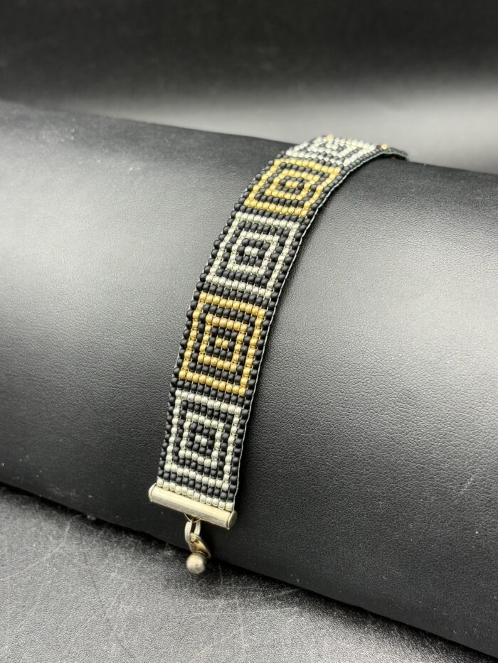 ‘Silver and Black Squares within Squares’ Bracelet by Nancy Leicht
