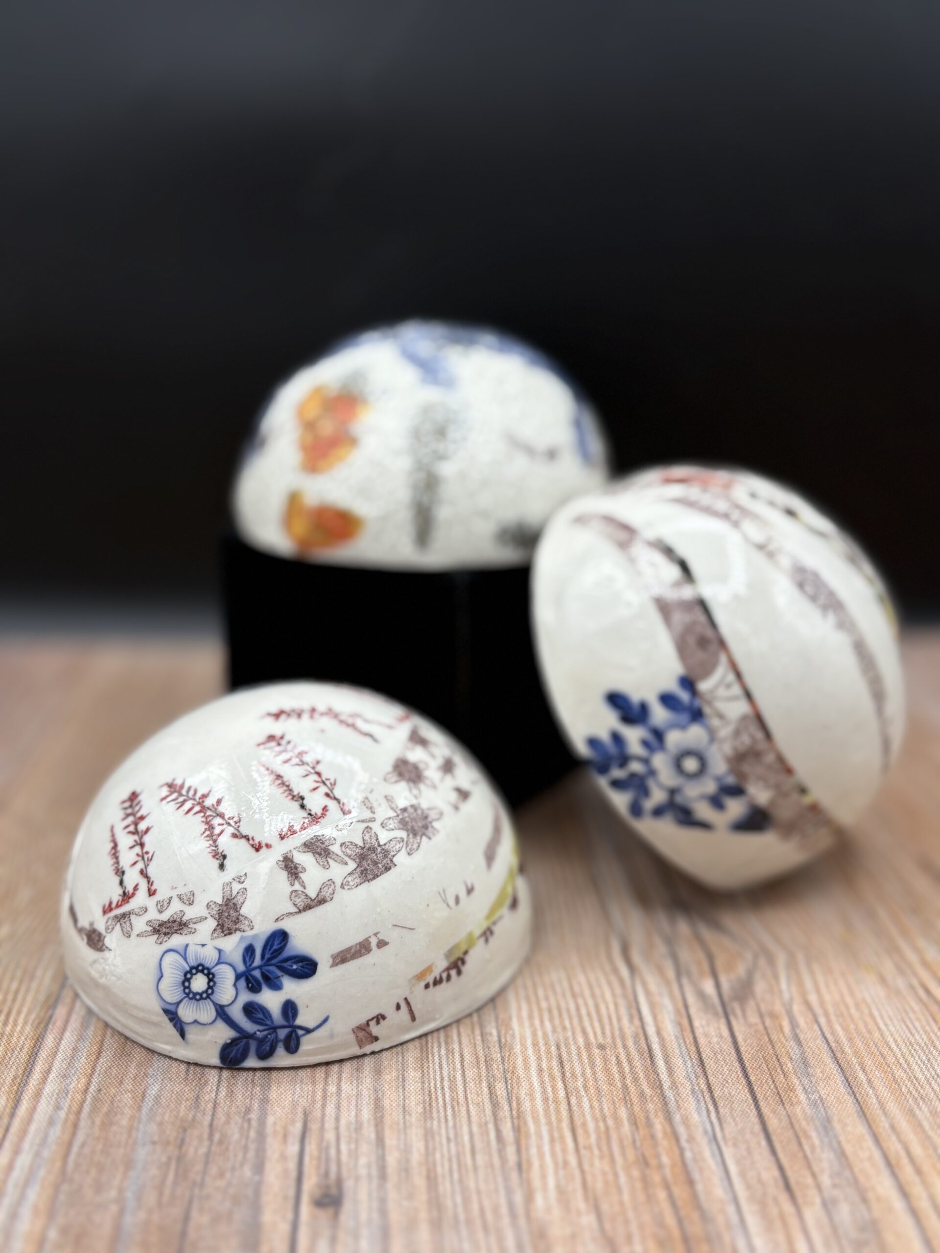 Laura’s art draws on her interest in the long history of painting on ceramics. Ceramic painting dates back to many ancient civilizations that incorporate traditional and contemporary techniques of putting design and imagery on ceramic forms and tile.