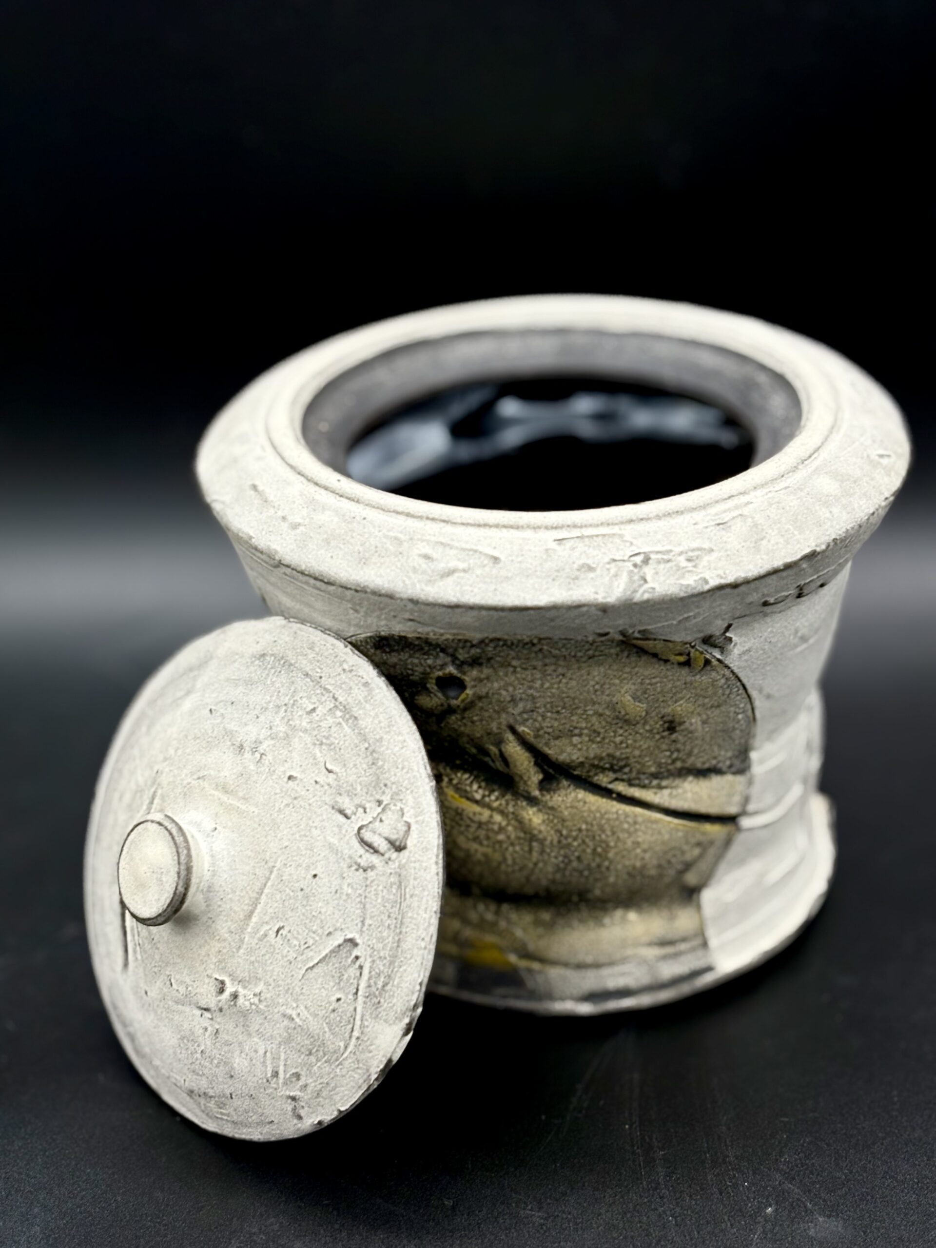 This ware is made from black clay and features bright vibrant colors and local material. It is wheel thrown and then altered. After drying, Terra Sigillata, slips, and local aggregate are applied on the vessel’s exterior for decoration. It is glazed and fired to 2200 degrees Fahrenheit, after which is is sanded for a soft, smooth feel. Each hand-made object is unique.