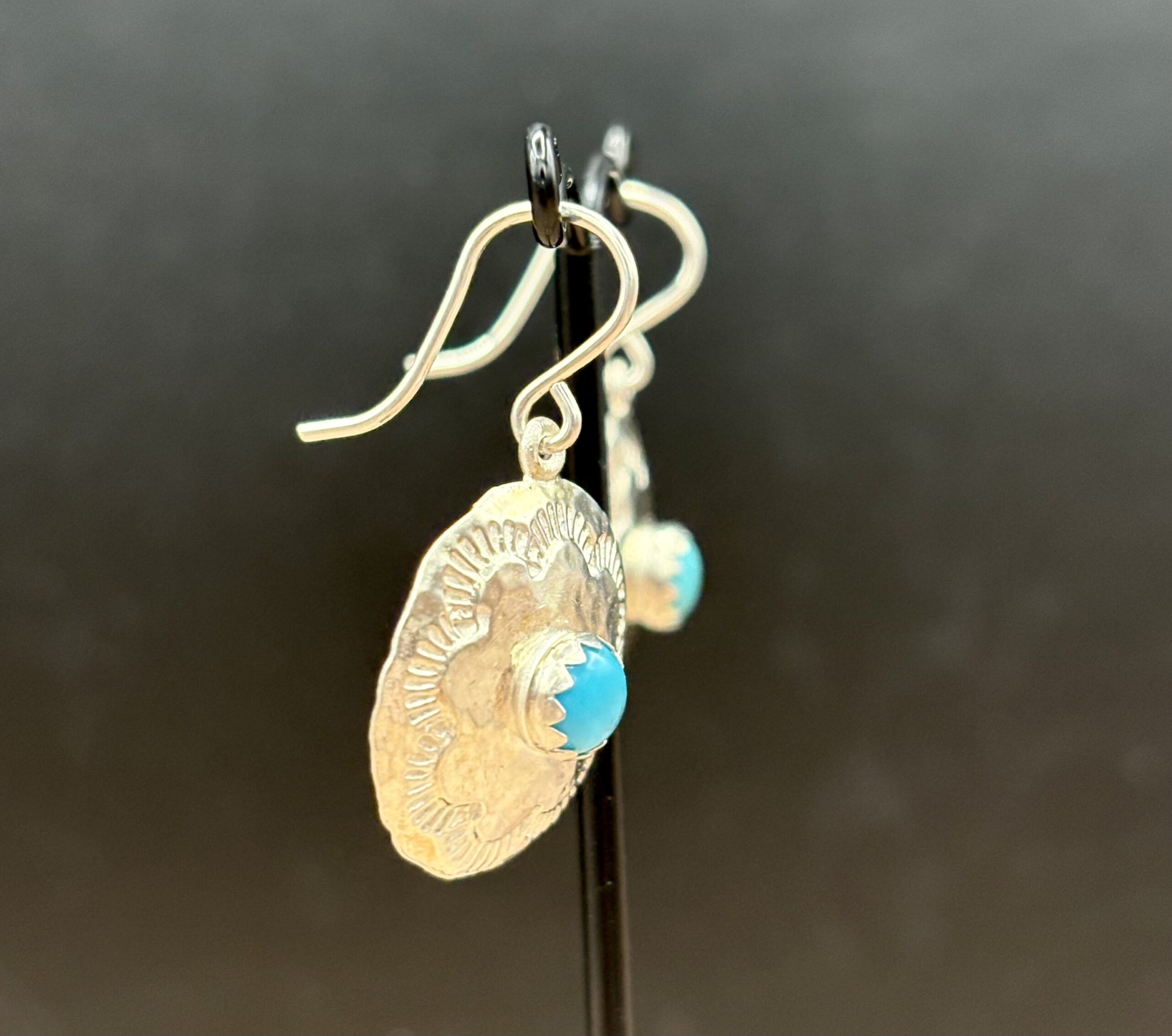 Sterling Concho Earrings with Turquoise by Tom Yazzie TYP-812