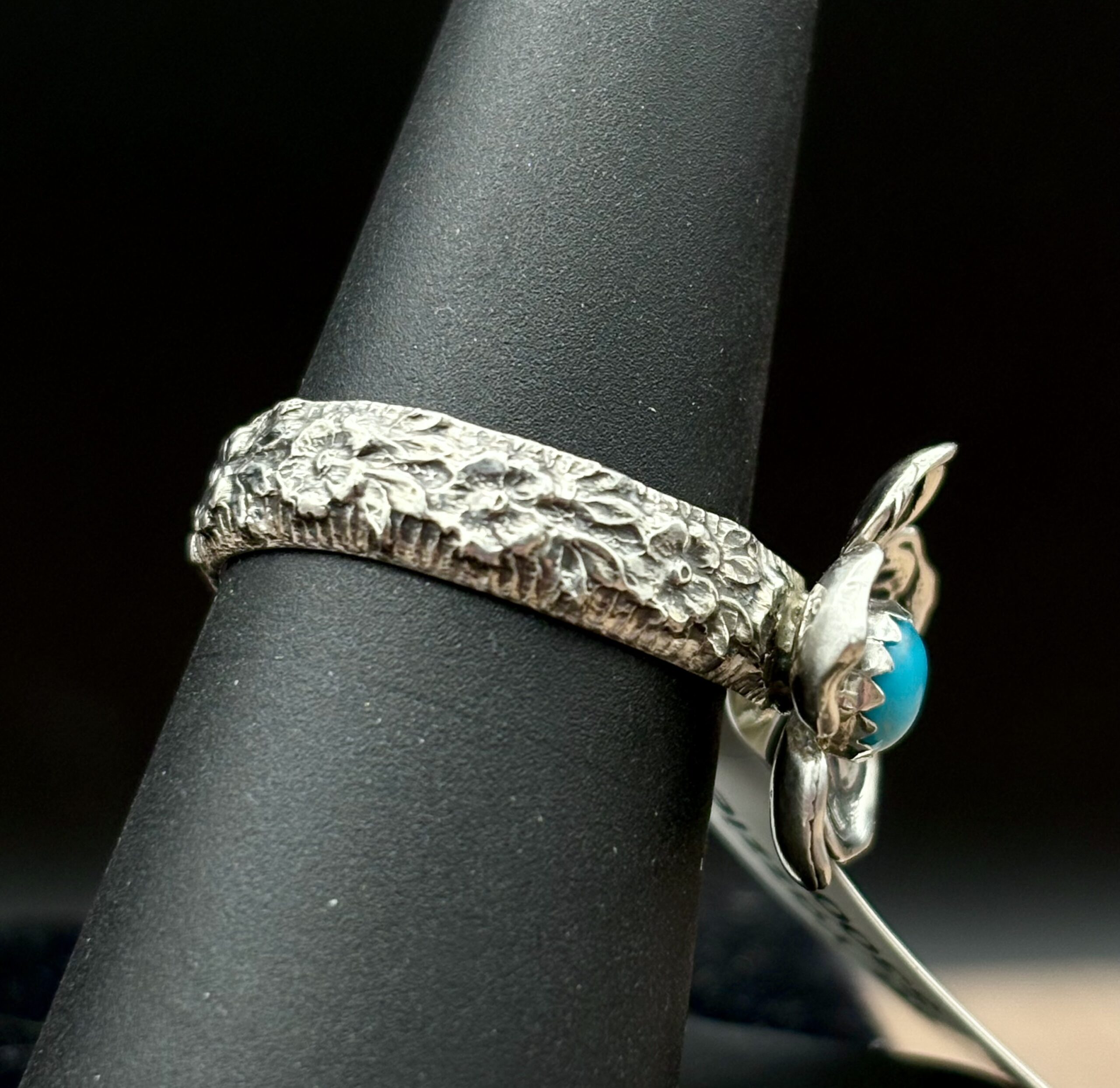 Sterling Flower Ring with Turquoise by Tom Yazzie TYR840