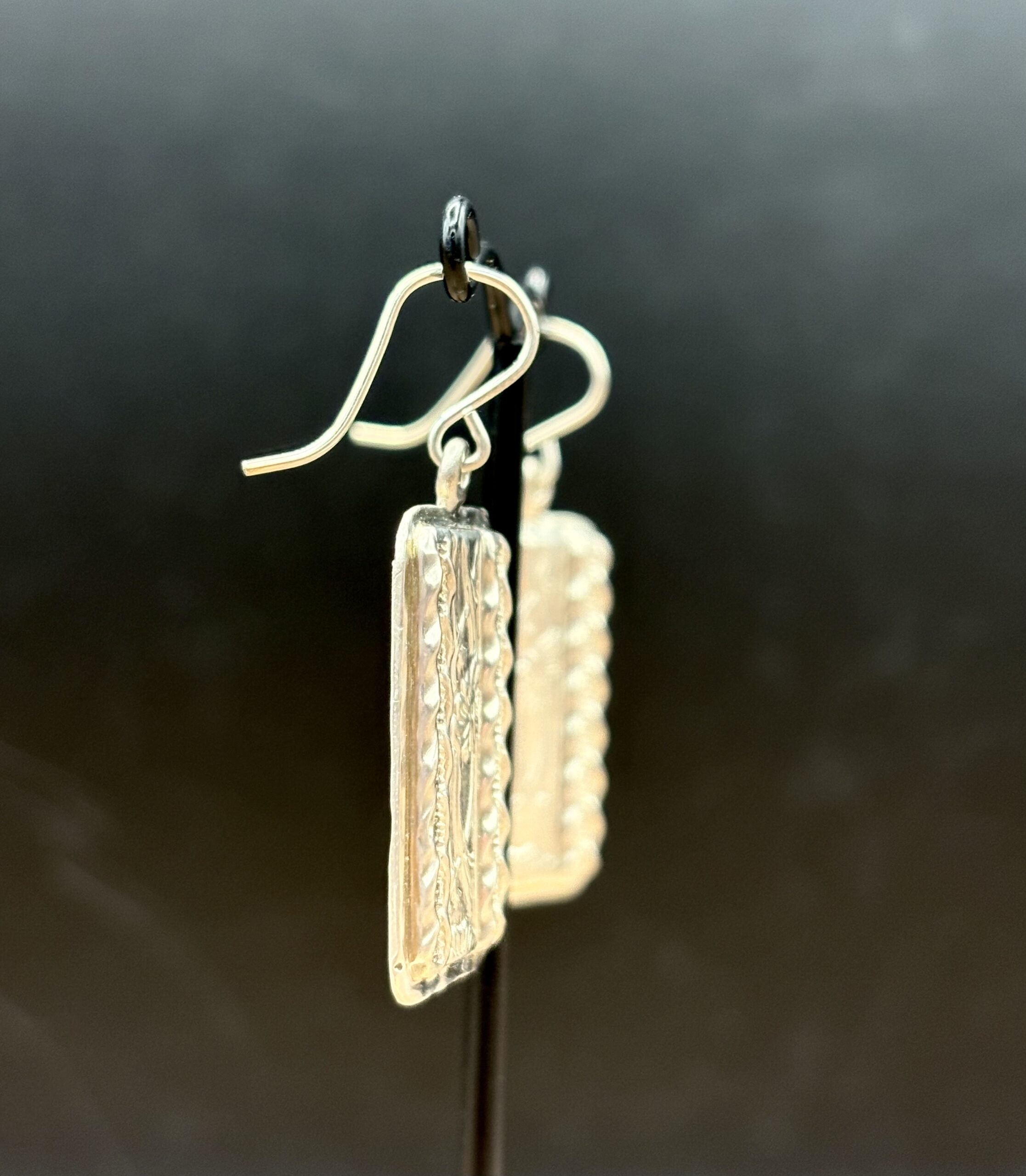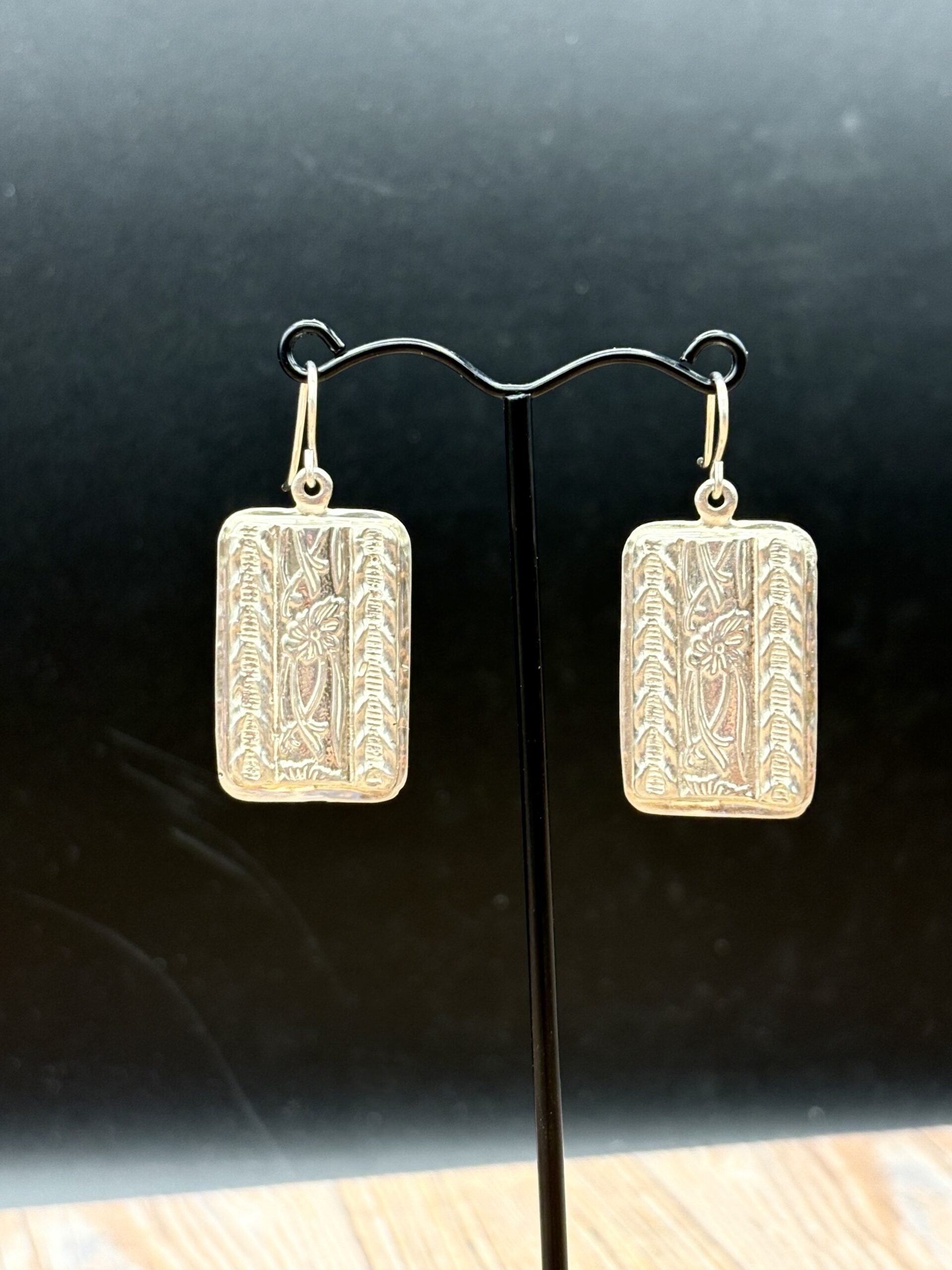 Sterling Rectangular Floral Design Earrings by Tom Yazzie TYE-897