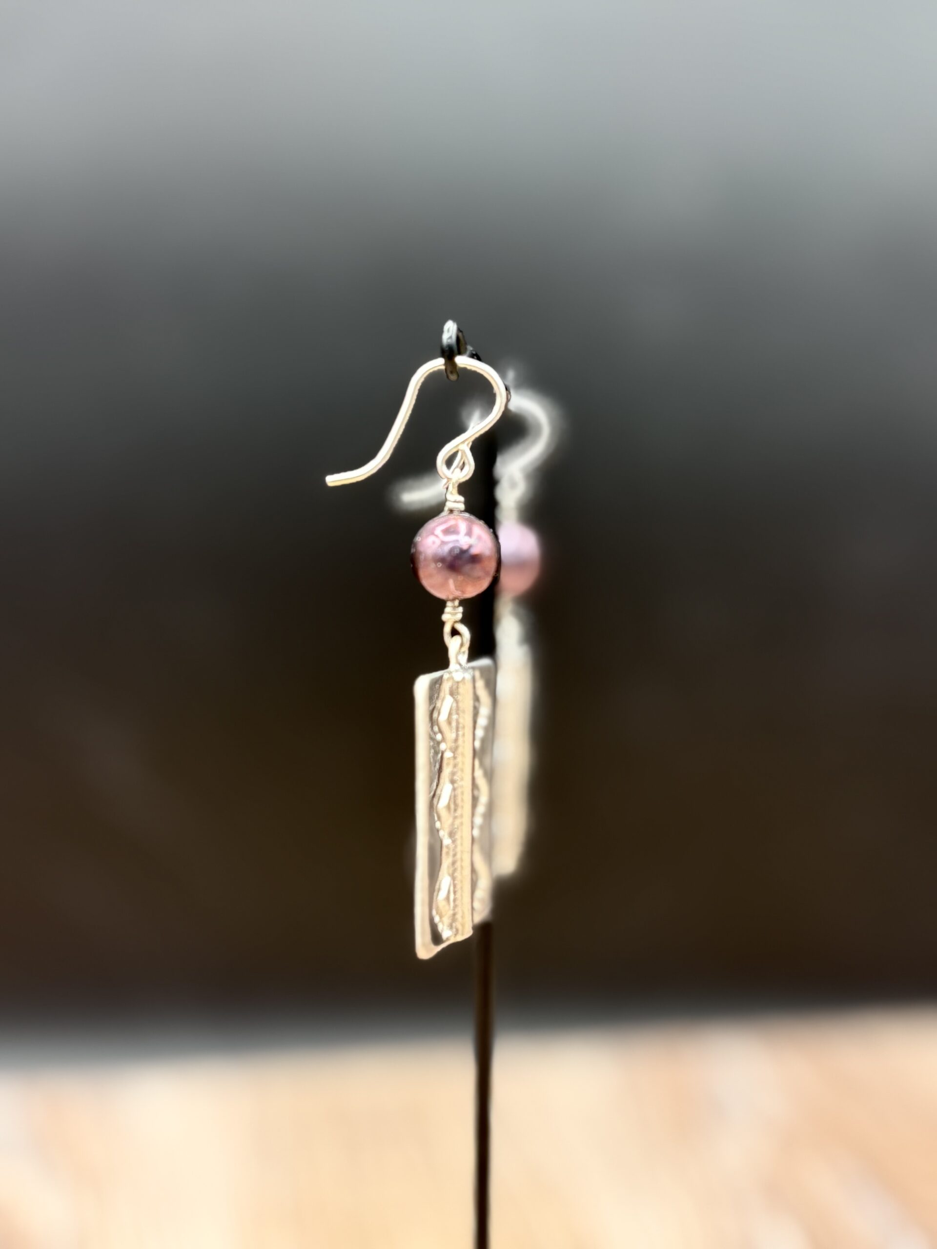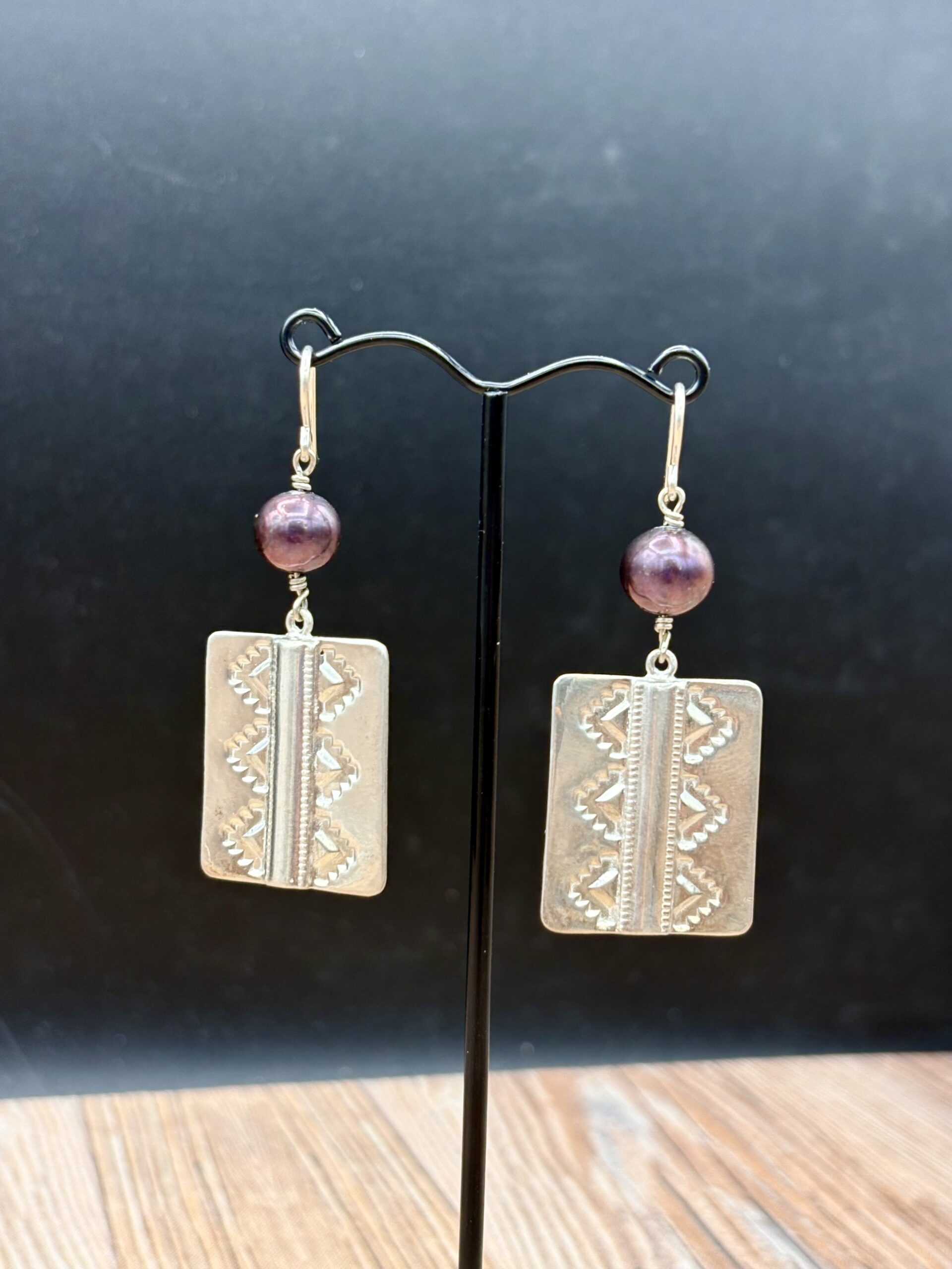 Sterling Silver Rug Design Earrings with Tahitian Pearls by Tom Yazzie TYE-682