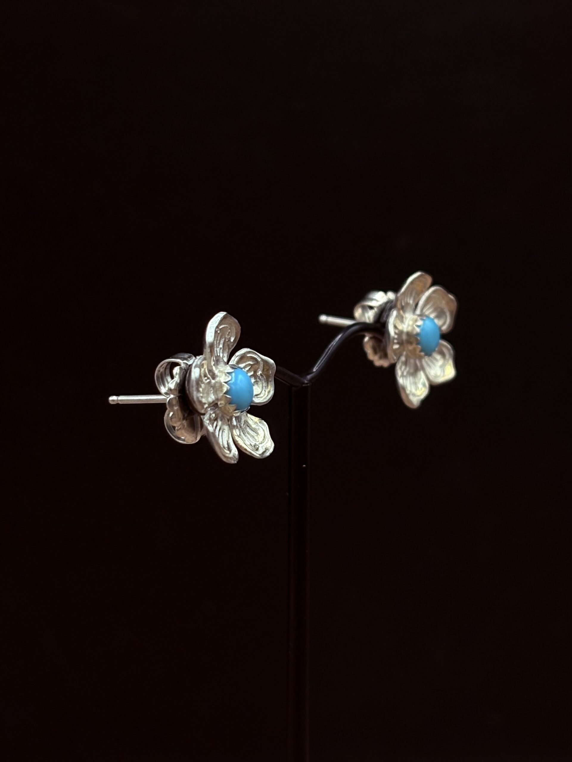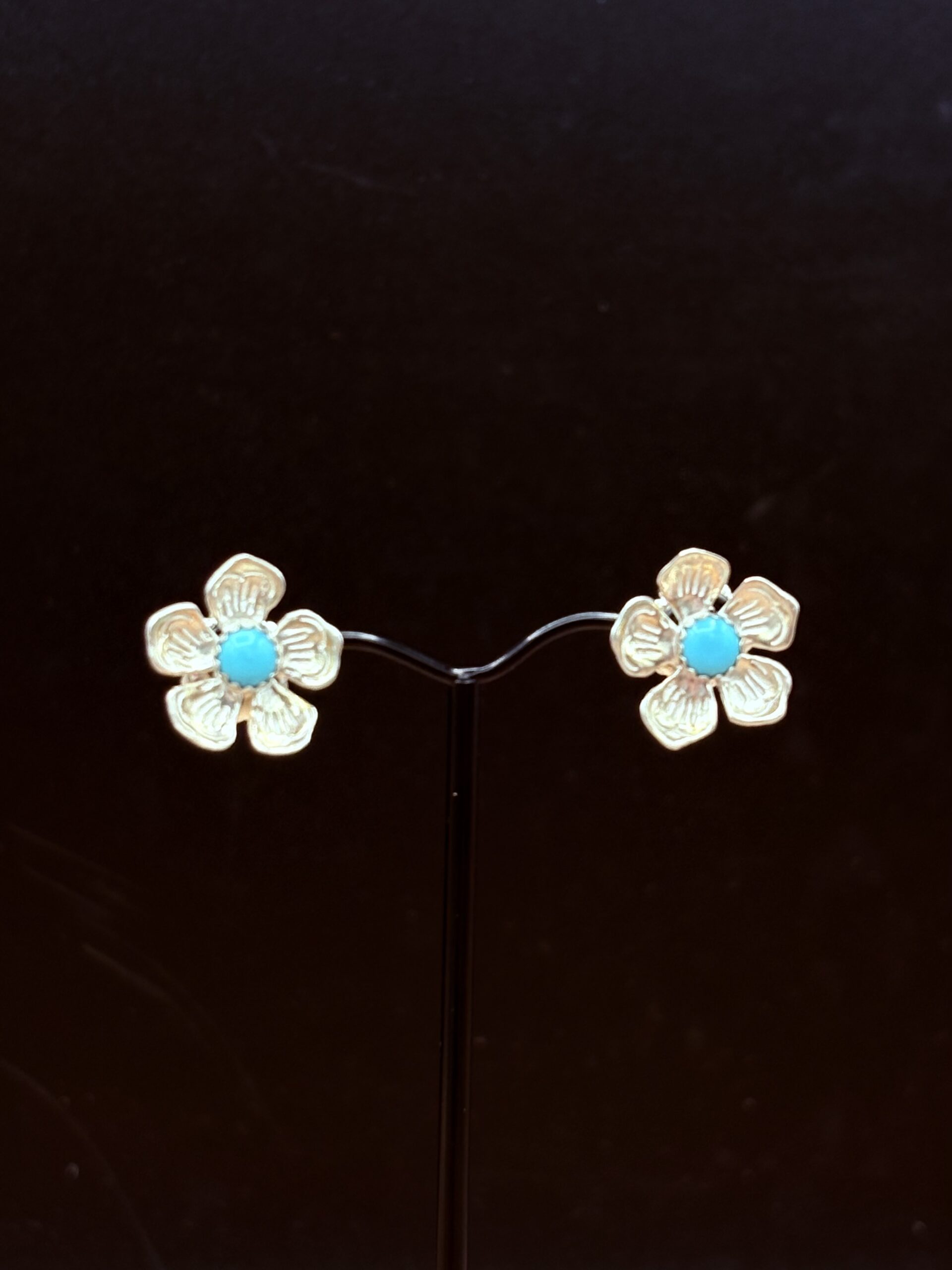 Sterling Silver 5-Petal Flower Post Earrings with Turquoise by Tom Yazzie TYE-913