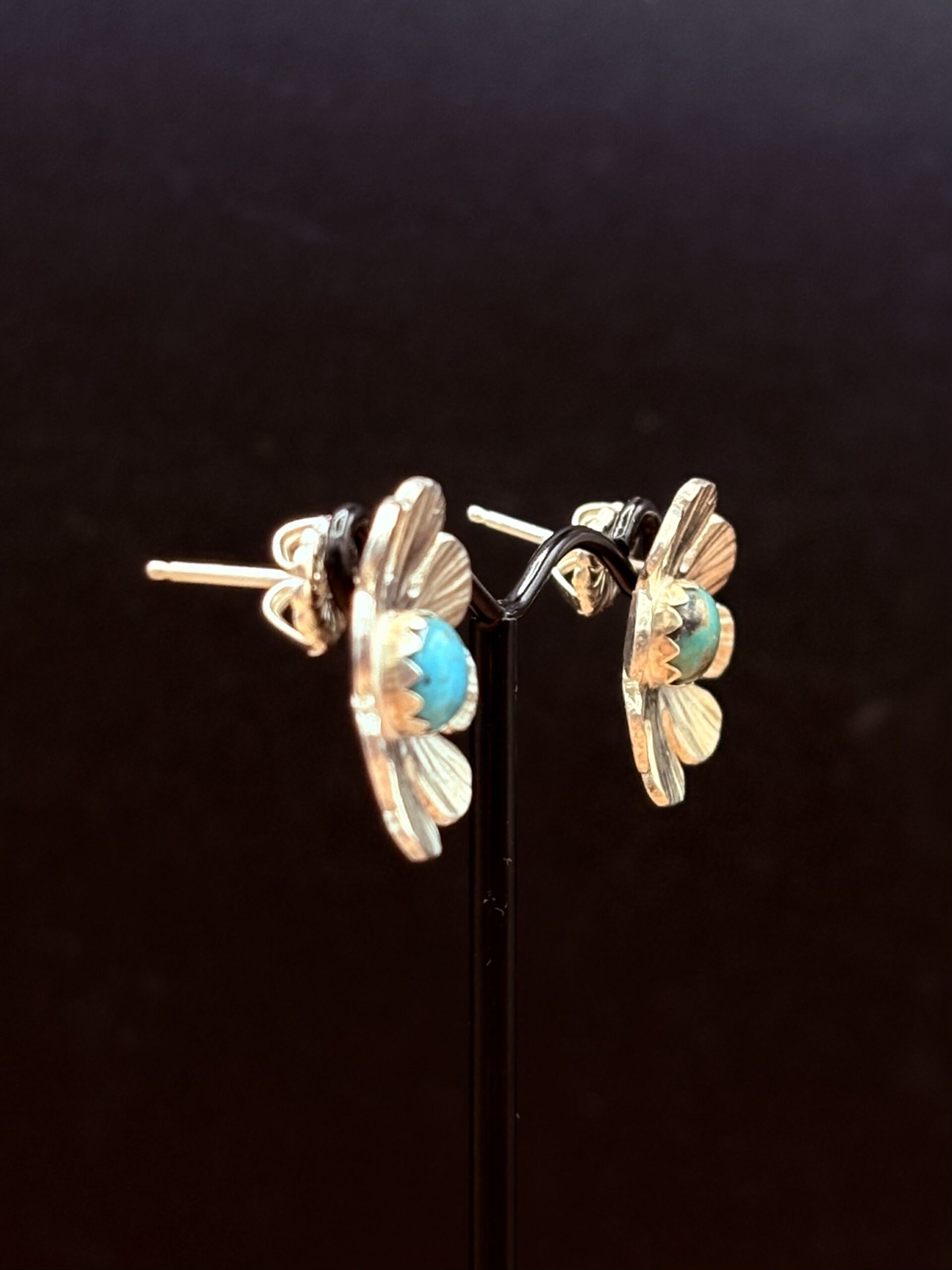 Sterling Silver Flower Post Earrings with Turquoise by Tom Yazzie TYE-912