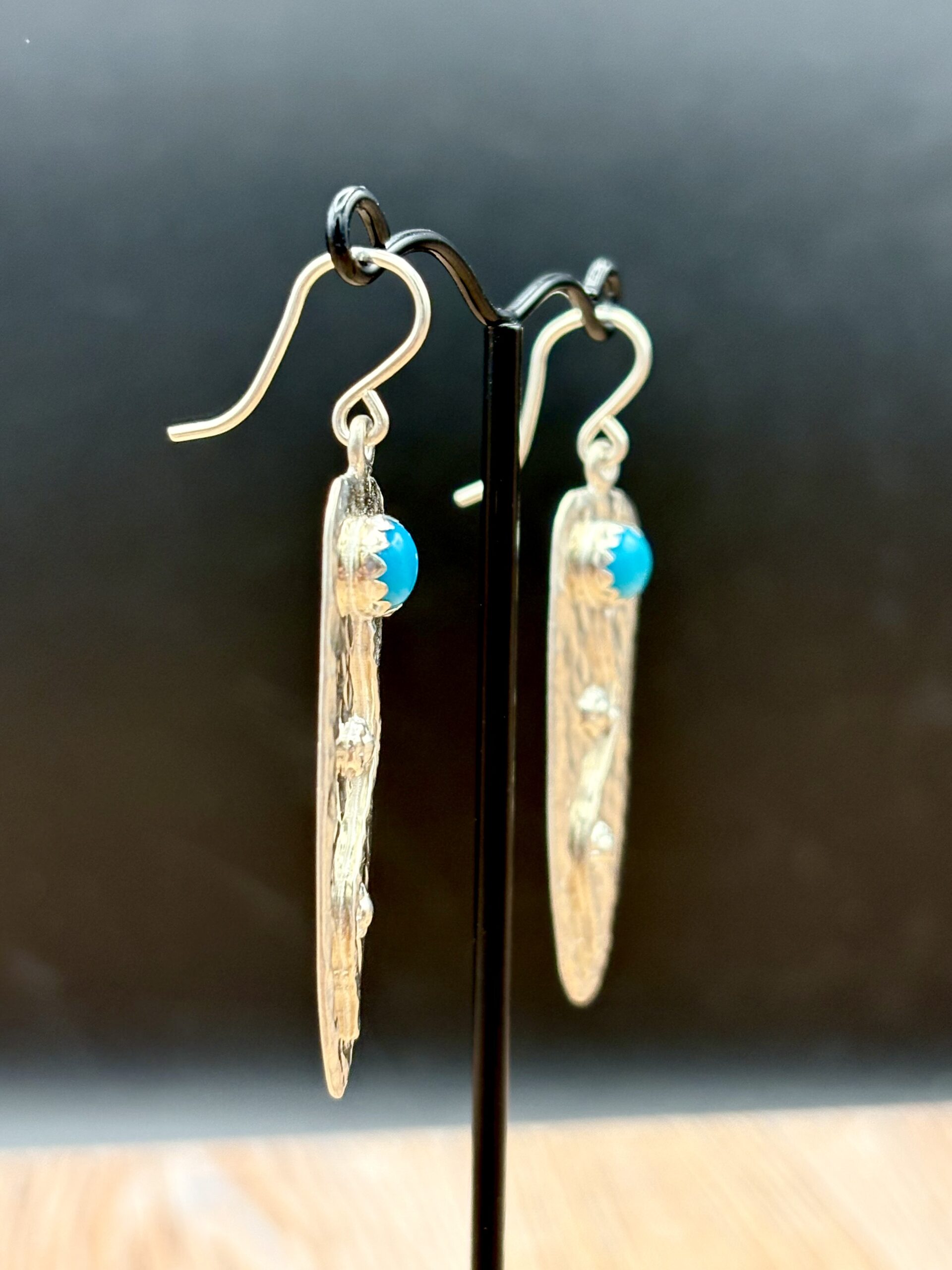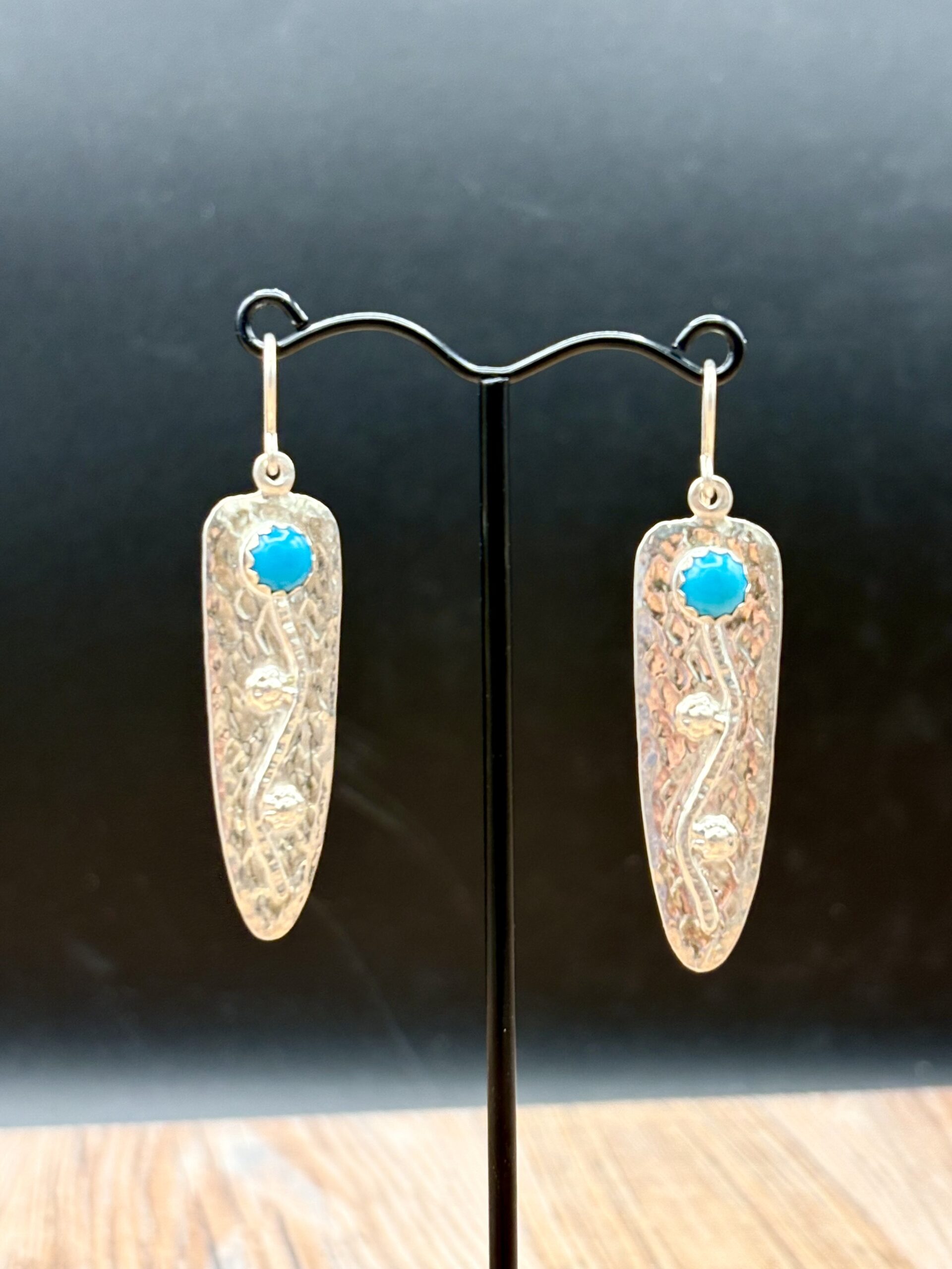 Sterling Silver Flower Stem Earrings with Turquoise by Tom Yazzie TYE-782