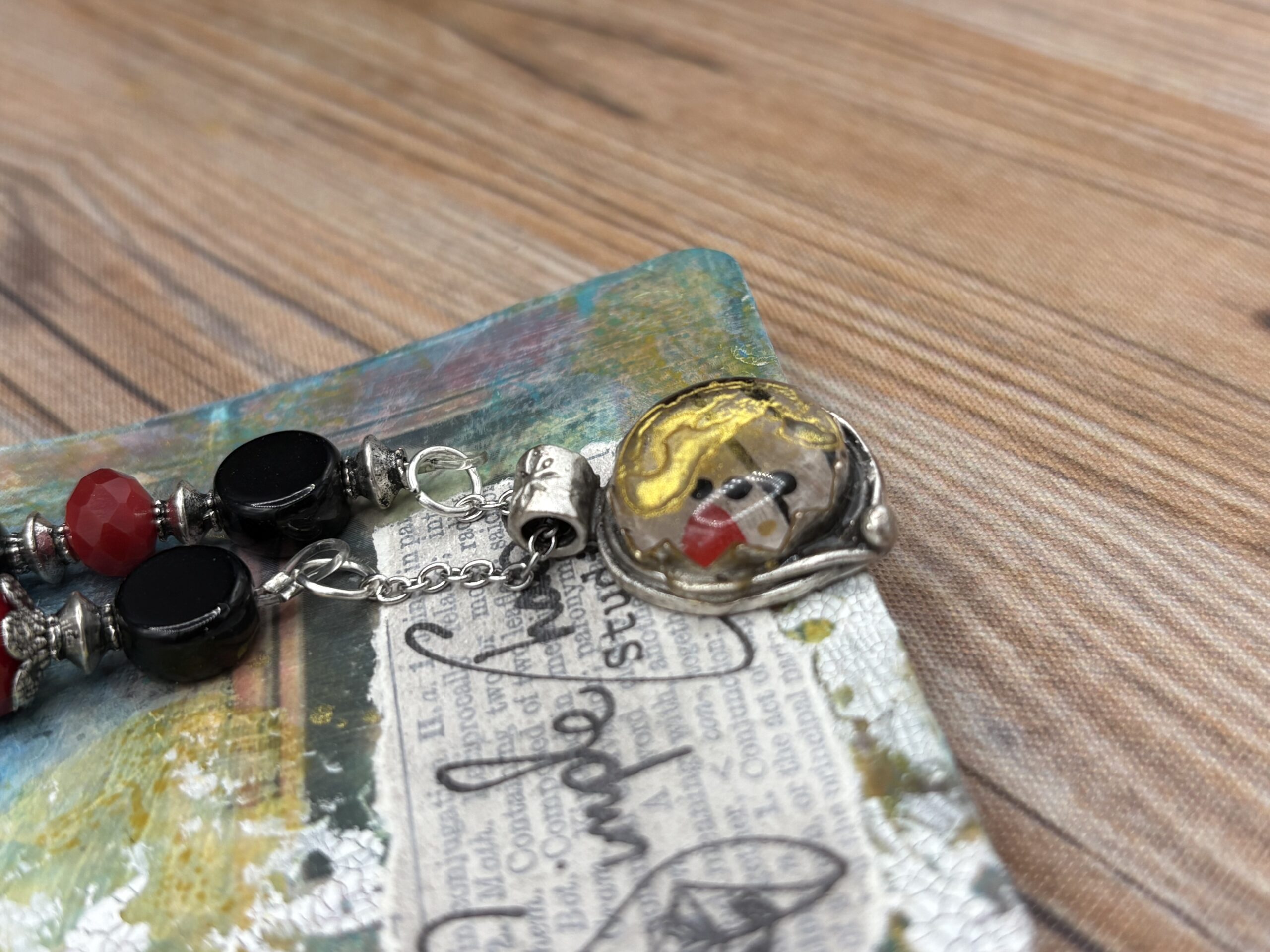 Sunday Licorice Necklace made with a Chain, Beads, Paper, and Resin Bezel by Sharon Gilham with unique Artist item number scs120n