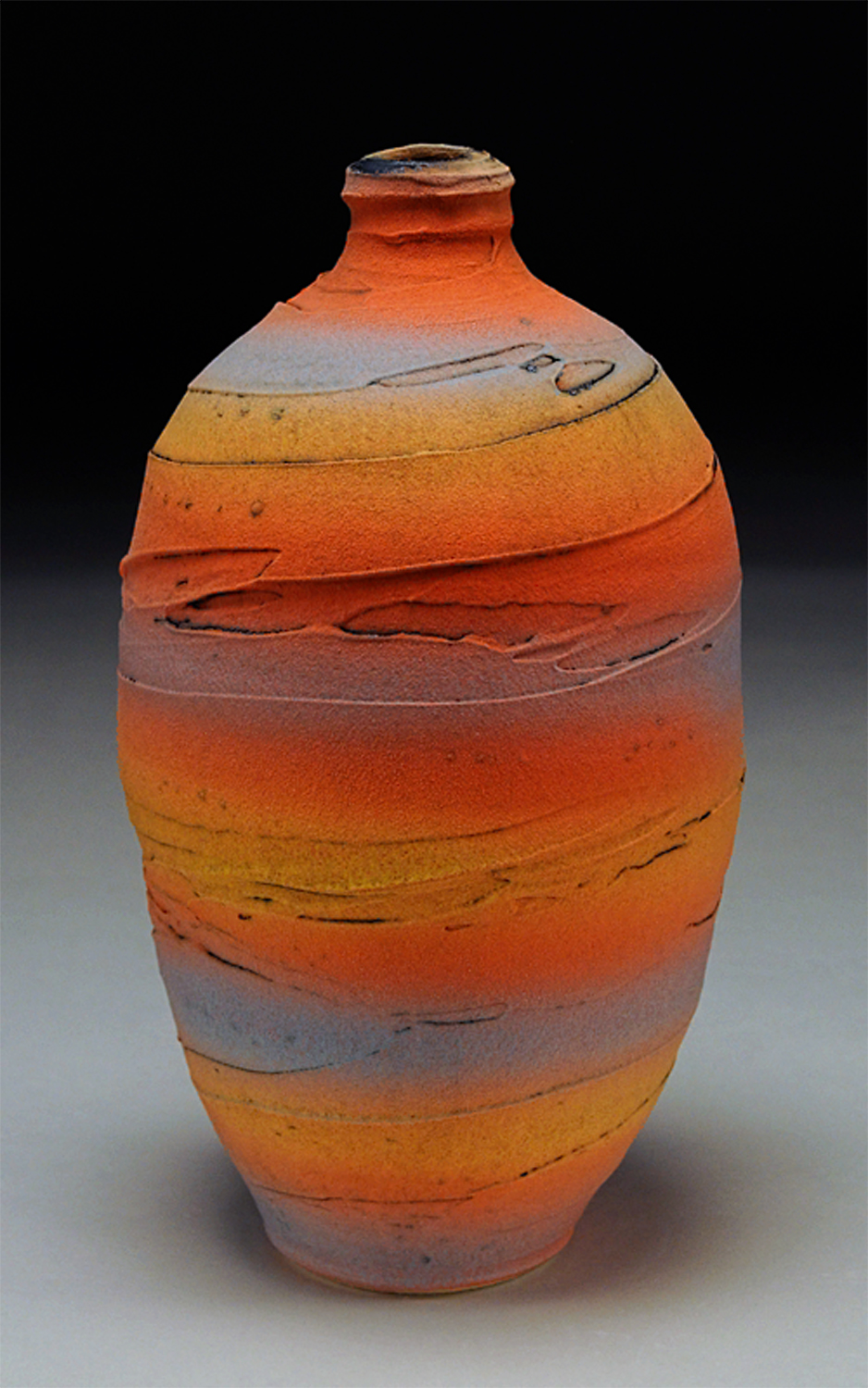 Early experiences with clay as a child apparently left a mark. After school, apprenticeships and more school, making pots was, is and will continue to be a way of life. I’ve been a studio potter for nearly 40 years now, living and working in Arizona for much of that time. My work as a professional has always been low fire earthenware. For many years my Raku pots were shown nationally. The influences are scattered from the Southwest, Africa and Japan to the cultures of the Mediterranean. A museum full of 2000 year old pots in Rhodes was an epiphany. Simple forms with no contrivance or pretension filled room after room. I hope to make one like that before I’m done. Seeing those pots 25 years ago started this current evolution. It began with soft muted colors and classic shapes. Amphora, ewers, and jugs with an ancient feel. Then, textured pots with extravagant handles, spouts and flourishes using brushed color. Over the last 25 years the current body of work has evolved. Hot colors, simple closed forms with very controlled textures dominate. High fire porcelain and white stoneware have now been added to the mix. This work is completely different from the earthenware. Different clays, firing and extravagant decorating techniques give homage to my influences and work from the from the past with a whole new level of skills and maturity. The last piece finished today, good, bad or indifferent is the product of doing the work for many years. These pieces can’t be made without those experiences, successes and failures, lots of failures. Even after 40 years, everyday in the studio is an adventure; I’m looking forward to working tomorrow.