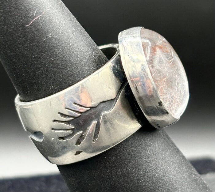Tintype and Reticulated Quartz Ring with Thistle Overlay KM010 by Kris Mills