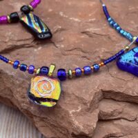 Jewelry Happily tucked away in my art glass studio in Sedona, Arizona, I am a visual artist, playing with light, color, heat and glass. These are the elements that help to create light transmission through translucent forms.