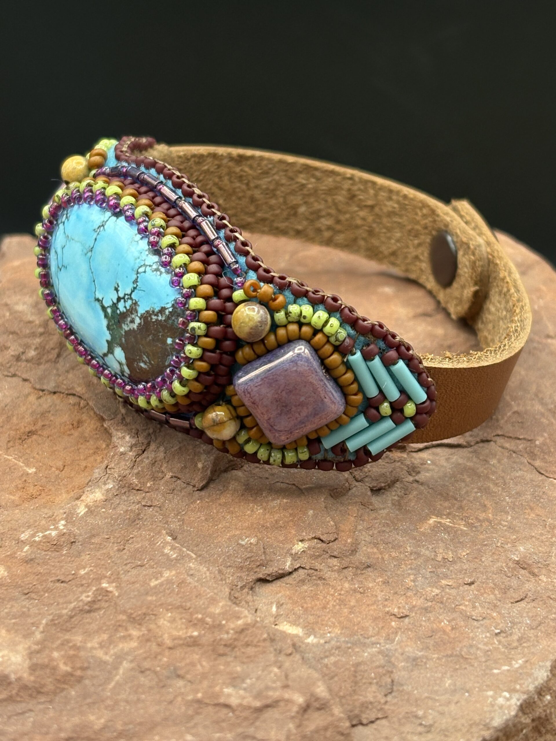 Turquoise Dyed Magnesite Leather Cuff by Sue Horine SHC34
