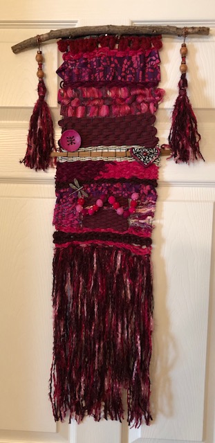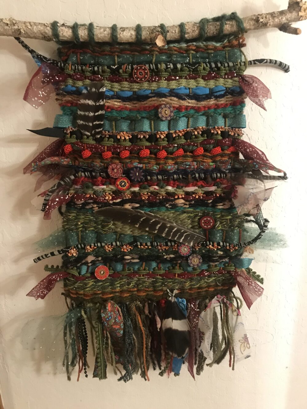 Learn many stitches and techniques to create exciting and unique weavings, made on a simple loom, which will be provided for you. You’ll learn to string/wrap your loom, use a beautiful variety of yarn and fabric to build the main structure, while also adding optional embellishments such as: lace, string, ribbon, shells, sticks, and jewelry parts. Whether you prefer symmetrical or random shapes, flat surfaces or undulating textures, realistic or abstract designs, you’ll gain the knowledge and skills needed to produce the look you choose. You’ll also learn to make tassels, pompoms, and fringes to add to your pieces. Once you have completed your weaving, you’ll learn how to remove it from the loom, secure it, and apply one of several options for hanging it. No weaving or art experience is necessary to take this workshop, or to make fabulous and unique pieces of art! By the end of class, you will have your new weaving(s) to hang on the wall, as well as your reusable loom, and the skills to continue this fun, relaxing, versatile, exciting and rewarding art form.