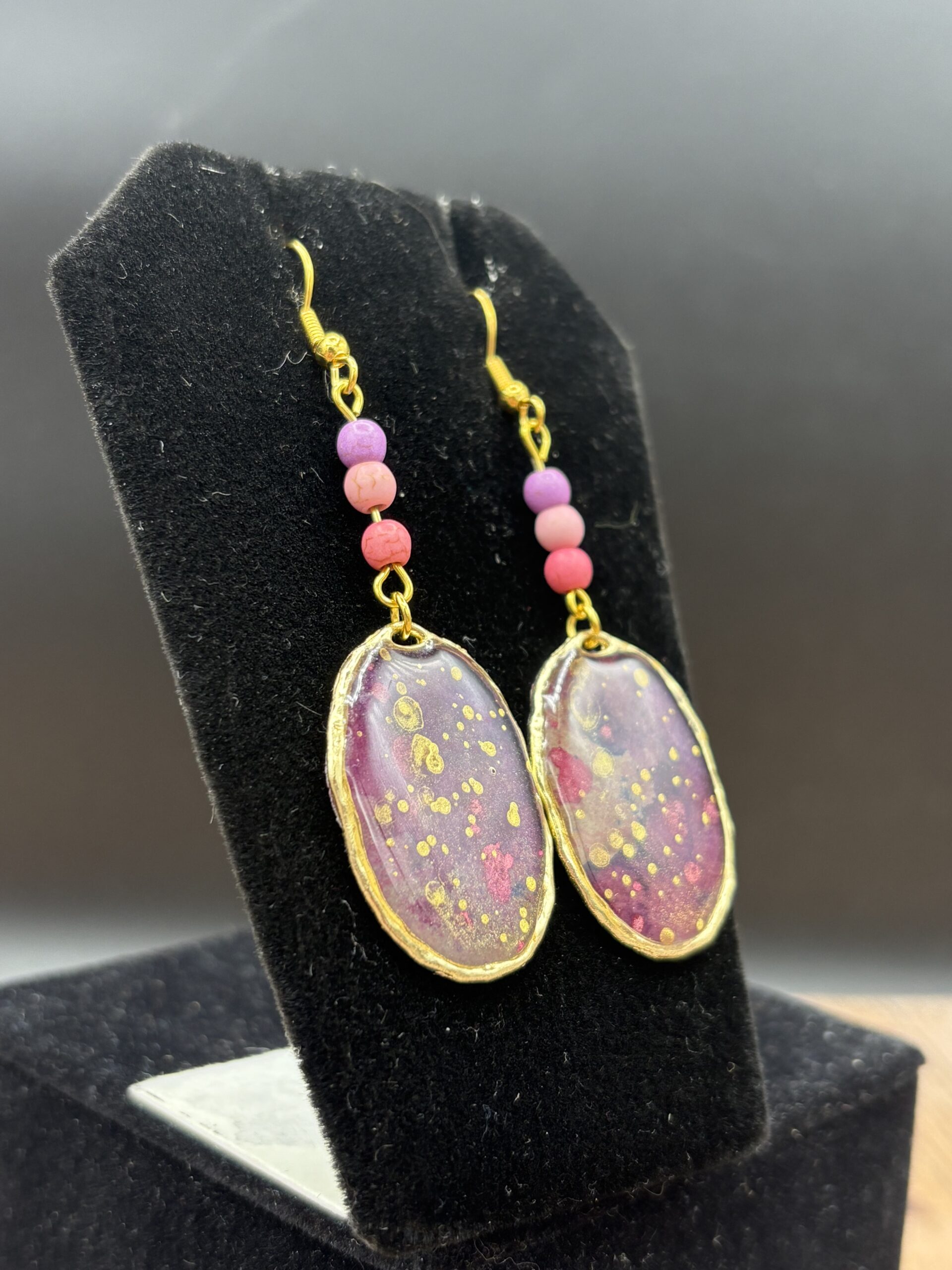 Handmade “Wild Plum” earrings, made with Paper, and Stone Beads by Sharon Gilham